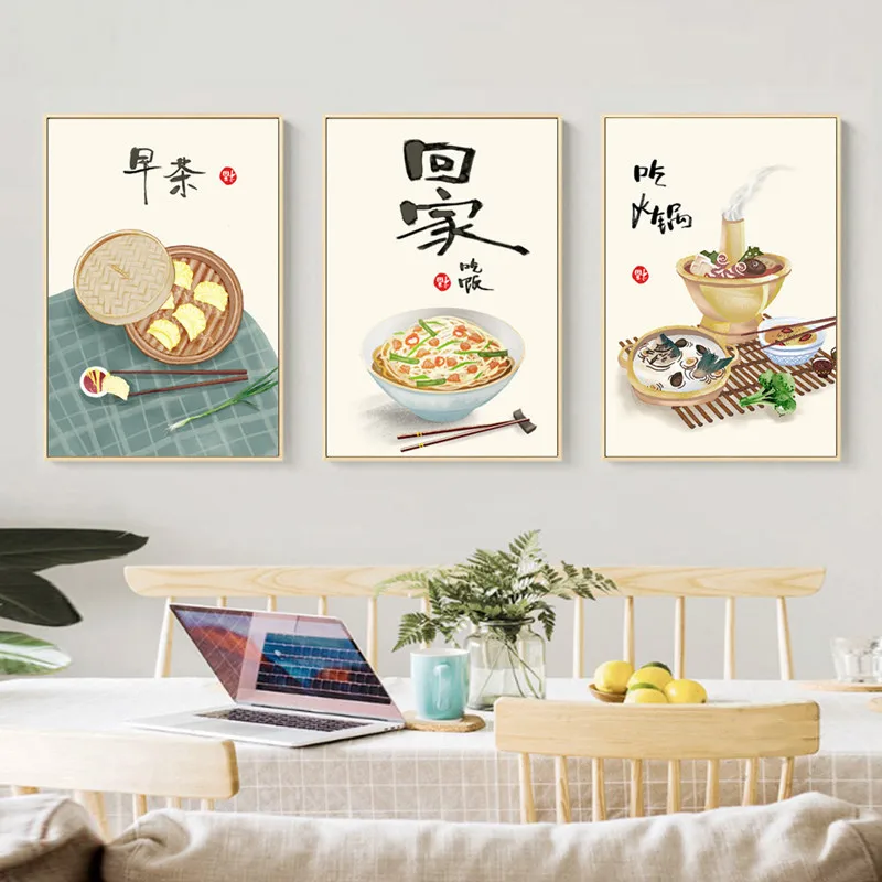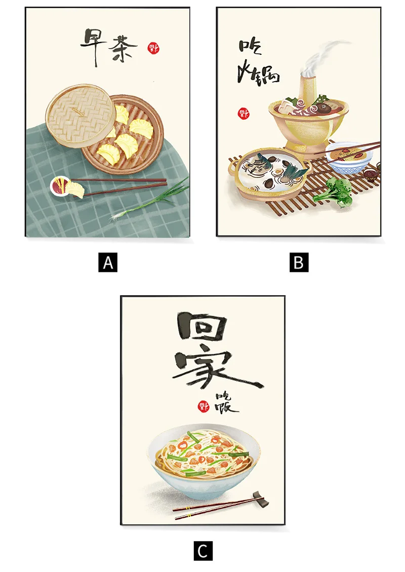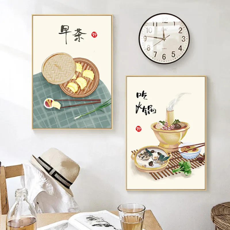 Современный мультфильм китайская еда ручная печать настенный художественный плакат простой Slow Life народный холст для картины на индивидуальный заказ для украшения столовой