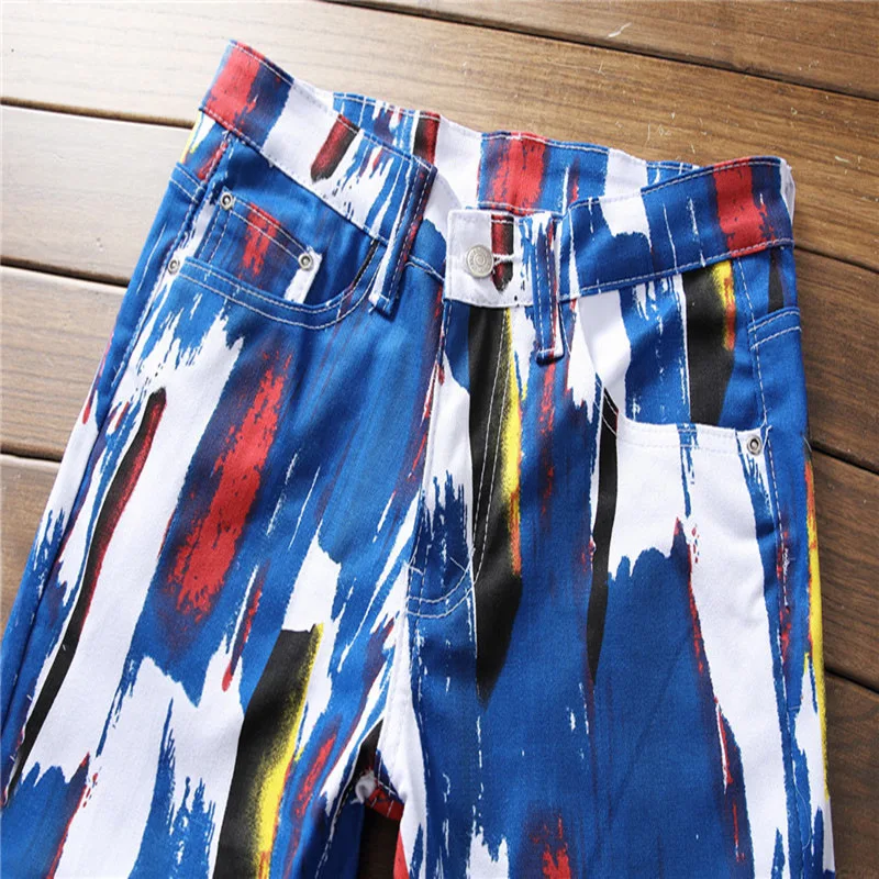 Джинсы мужские зауженные с цифровым 3D принтом, модные дизайнерские эластичные брюки с принтом граффити, узкие эластичные джинсы