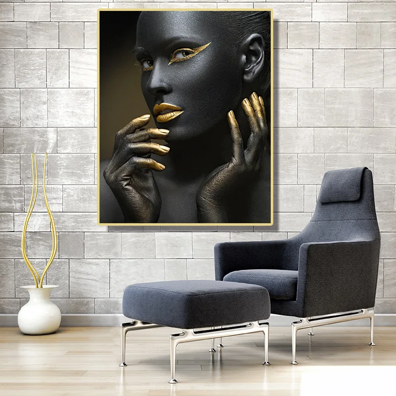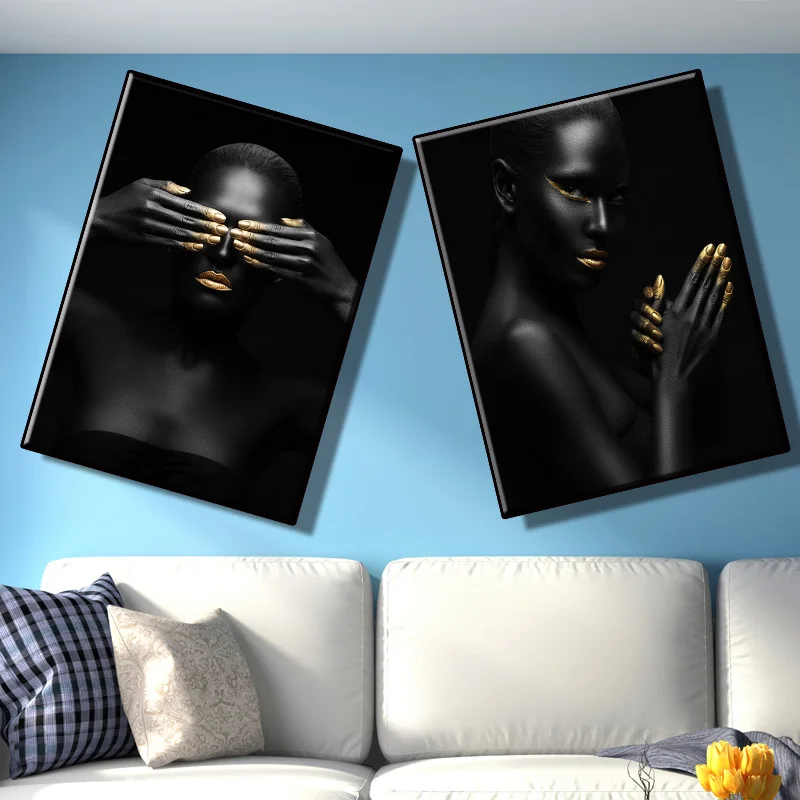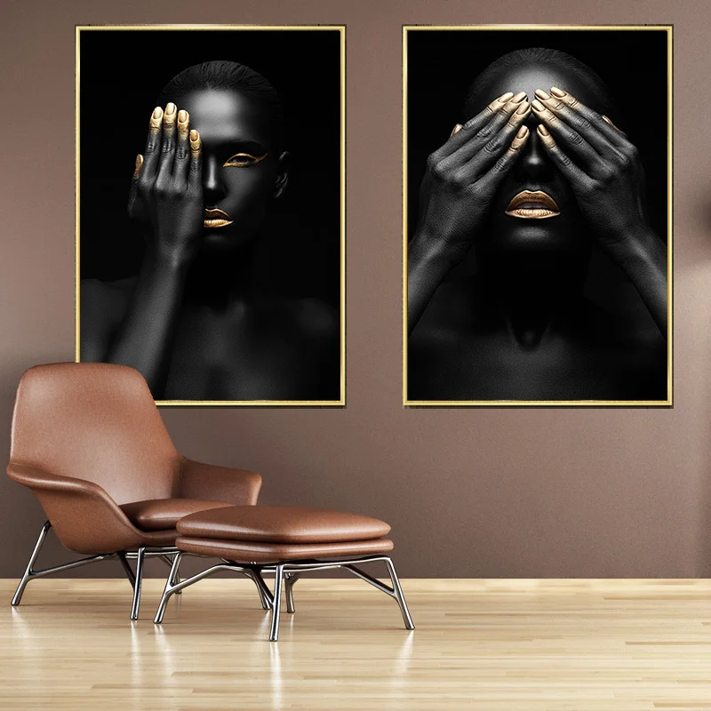 Характеристики ковриков с печатью под заказ в африканском стиле арт черный и золотой Картина на холсте женщина Абстрактная Живопись Рисунок плакат Европа рождественские украшения для дома без рамы
