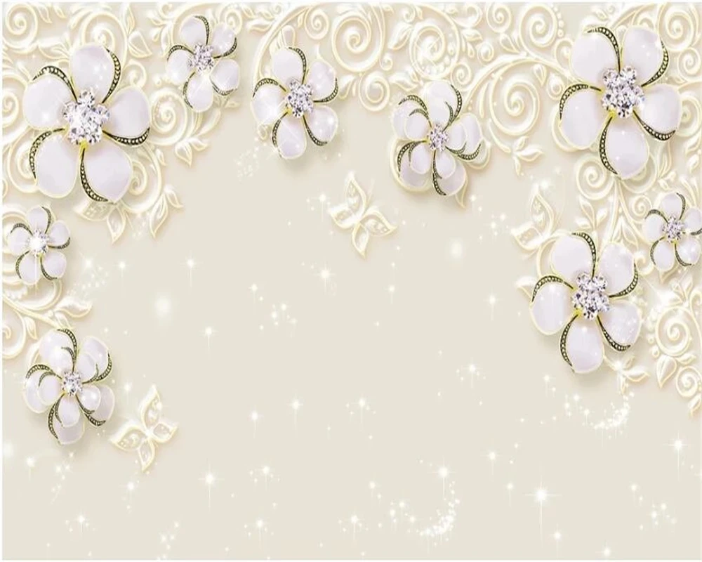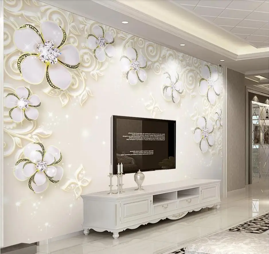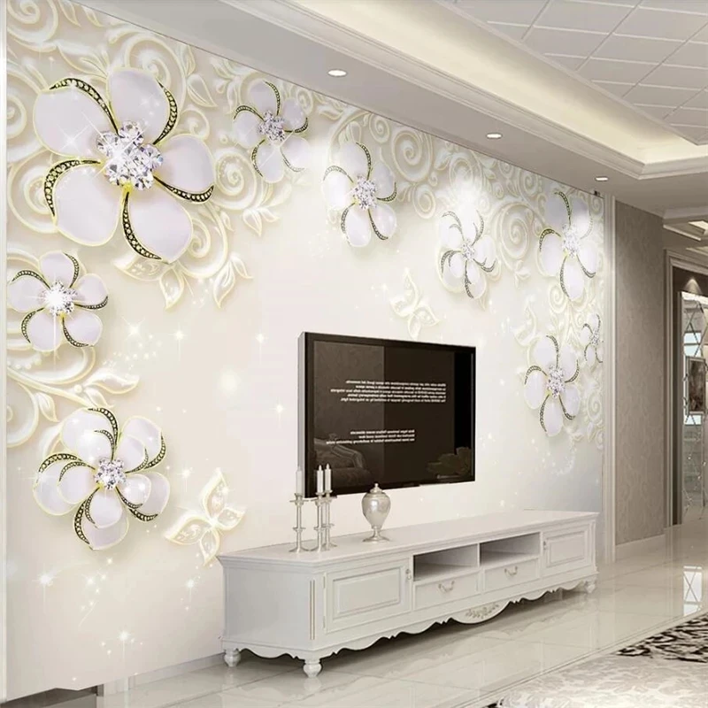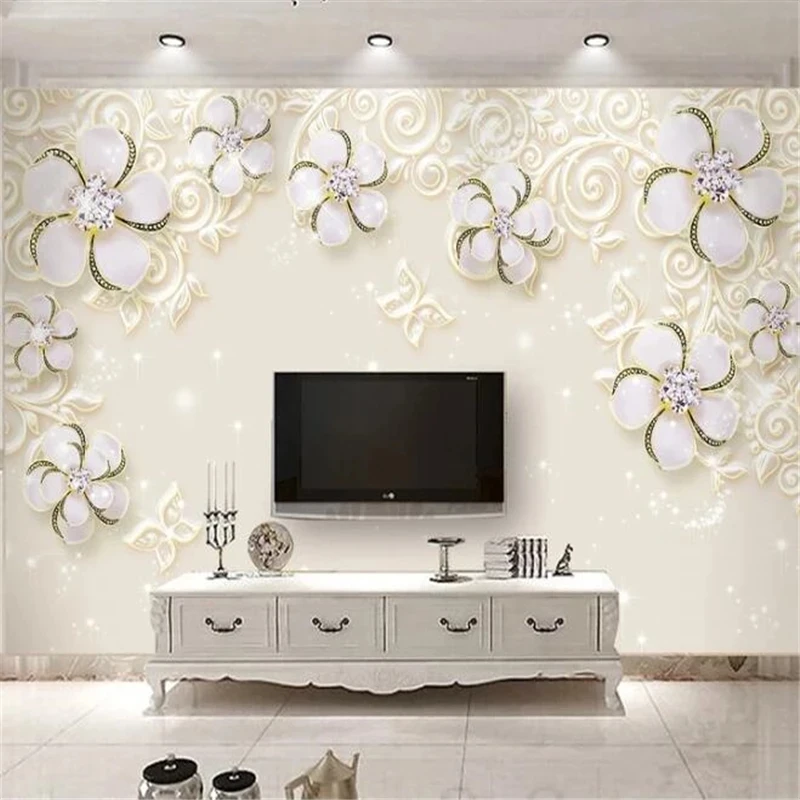 Самоклеящиеся обои на заказ, 3D стерео фото фрески, Красивый рельефный белый цветок, фон для телевизора, настенные бумаги, домашний декор