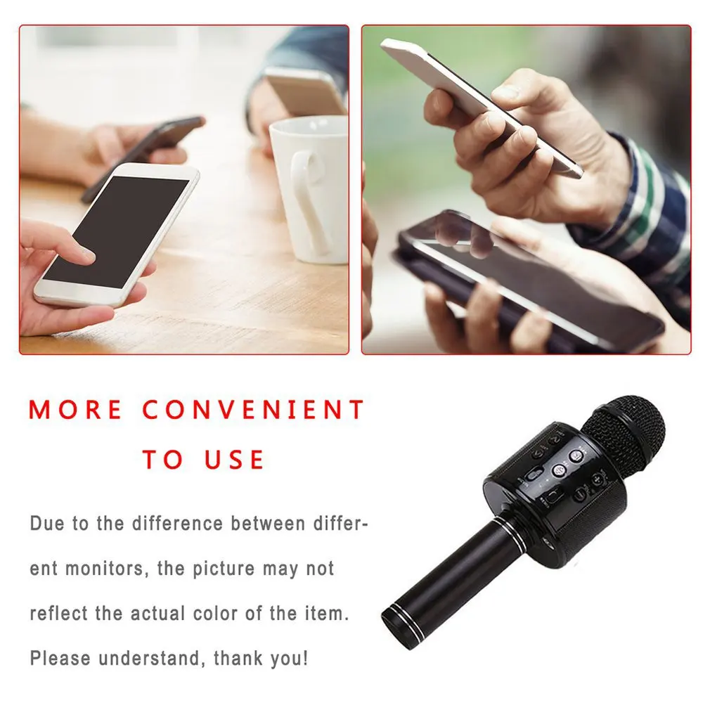 С внешним стерео, это не только мобильный телефон караоке микрофон, но и беспроводной аудио. Вы можете слушать и слушать, и испытать различный опыт караоке.
