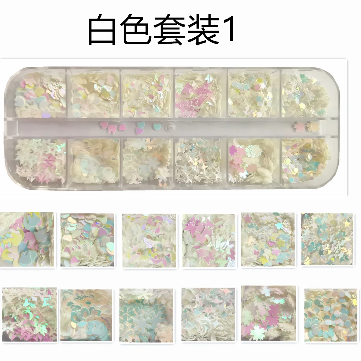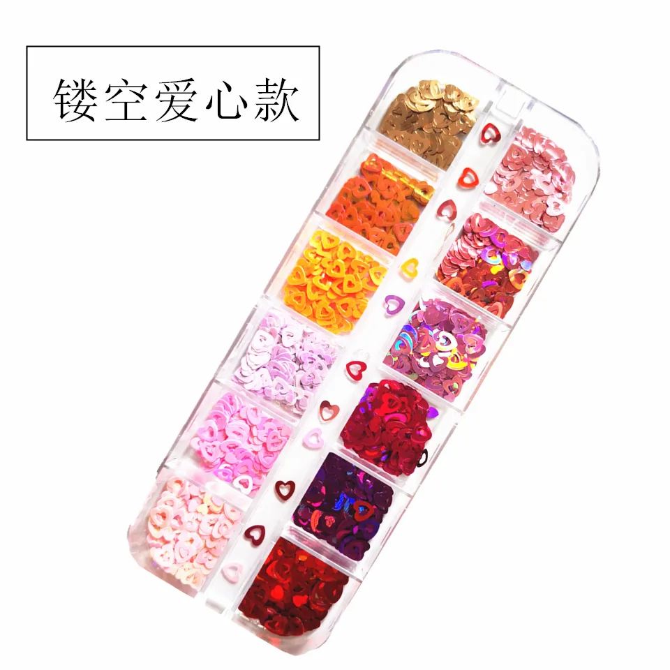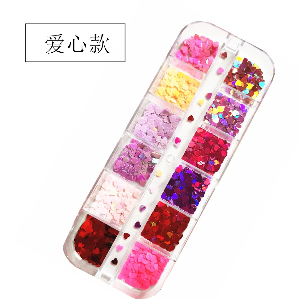 12 Сетка ко Дню Святого Валентина набор лазер для ногтей Блестящий патч красное сердце Li ion аккумулятор бабочка в виде кленового листа гибридный УФ-гель для ногтей, аксессуары для украшения ногтей
