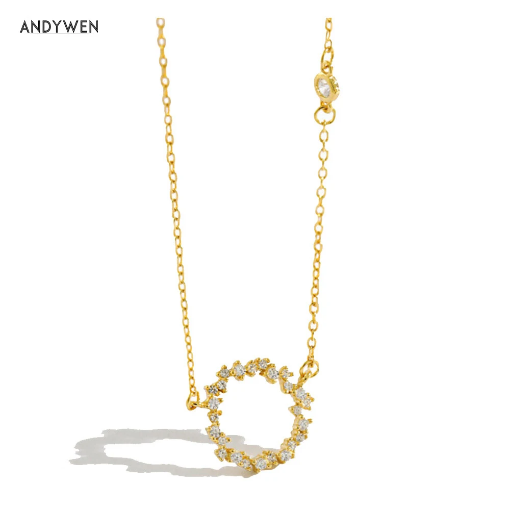 Круглый Кулон ANDYWEN из стерлингового серебра 925 пробы с круглым цирконием, длинная цепочка, ожерелье, свадебный подарок, модные ювелирные изделия для женщин