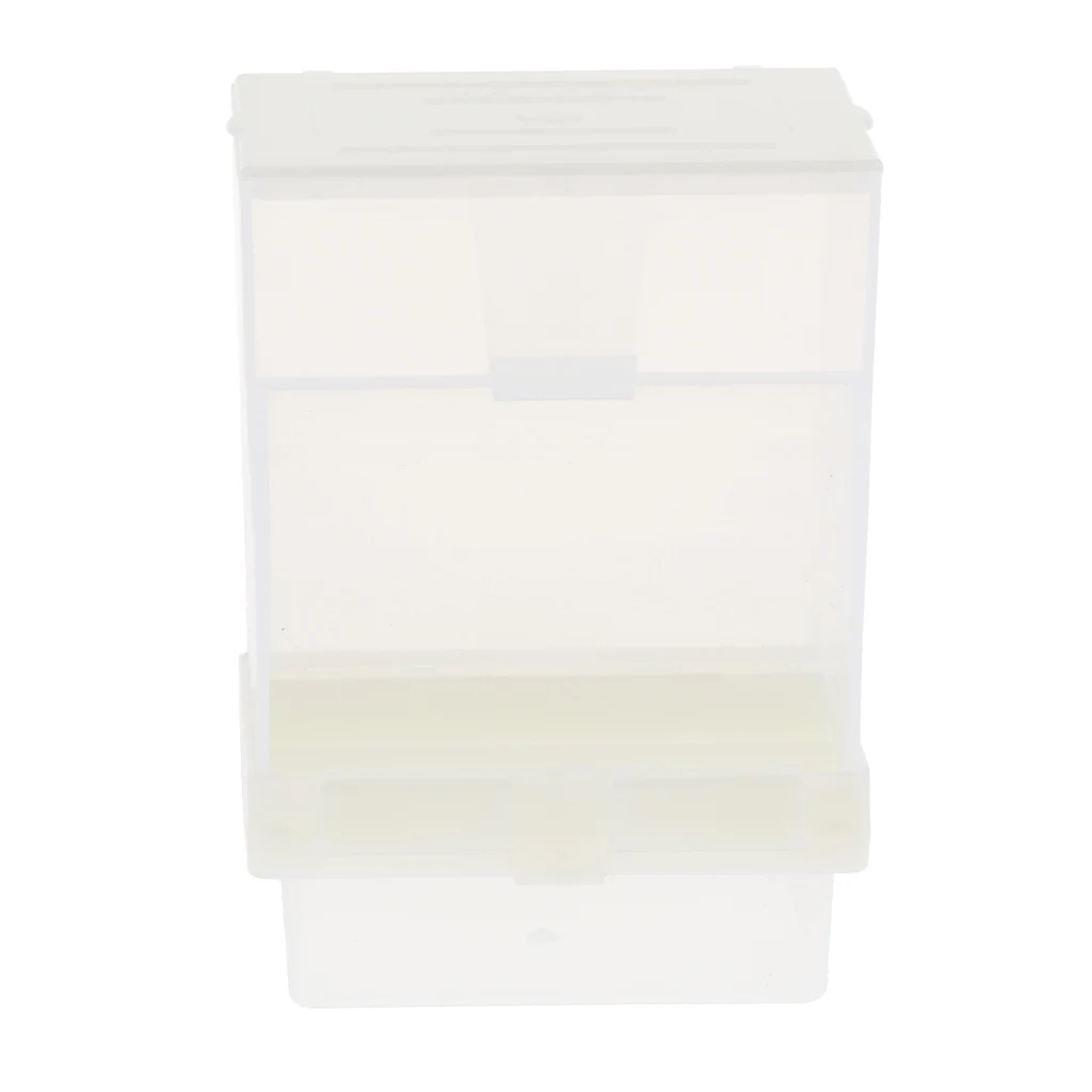 -100% Новинка и высокое качество.-Защита от брызг и практичность в использовании.-Птицам легко есть. Этот питатель можно закрепить на внешней или внутренней части клетки.-Автоматический фидер удобен и долговечен.-Материал: пластик, Размер (ДхШхВ): прибл. 10x7,5x14 см/3,94x2,95x5,51 дюйма