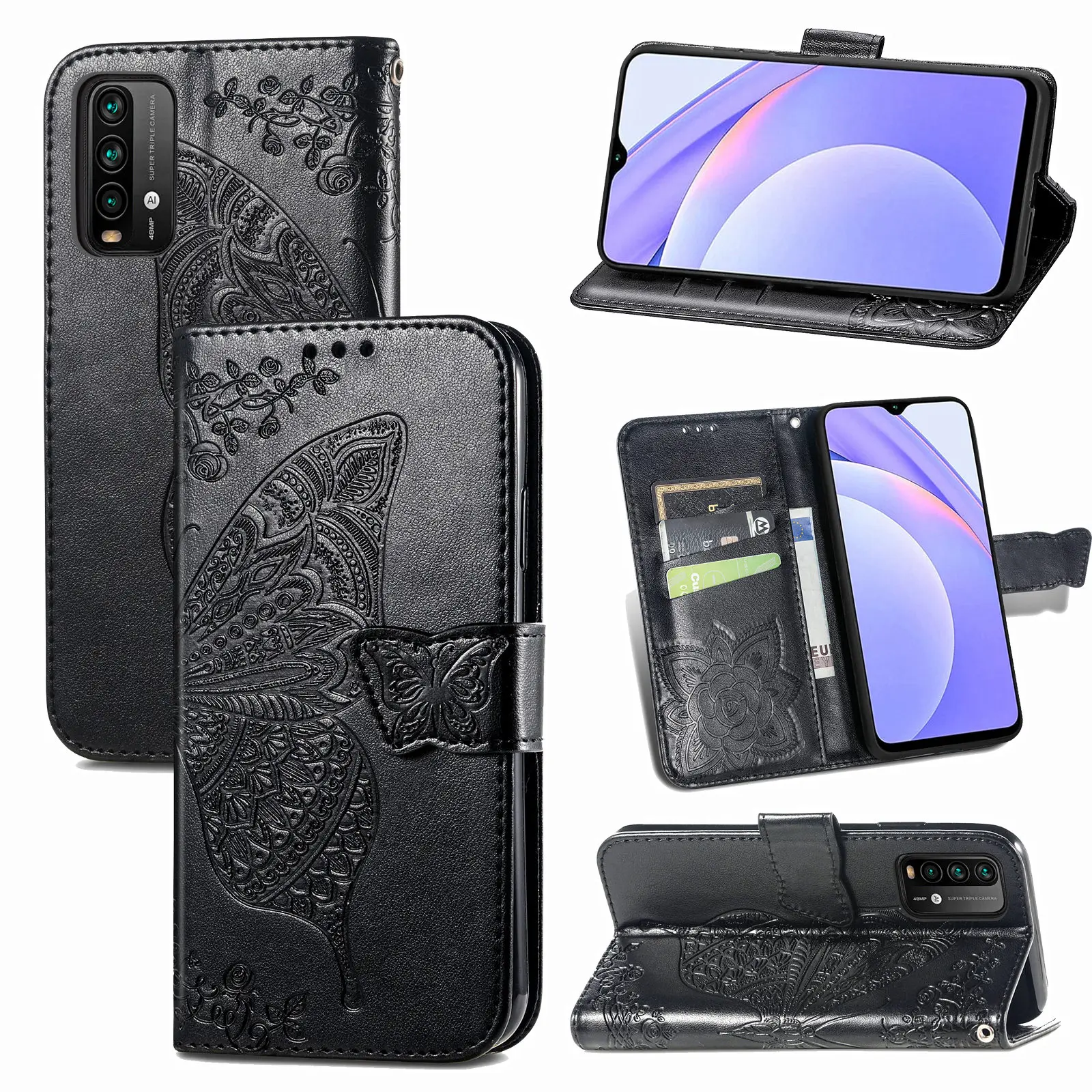 Милый чехол с бабочкой для Xiaomi Redmi Note 9 (6,5 дюйма), кожаный чехол-книжка с откидной крышкой и подставкой для карт, черный, красный, Mi Note9, M2003J15