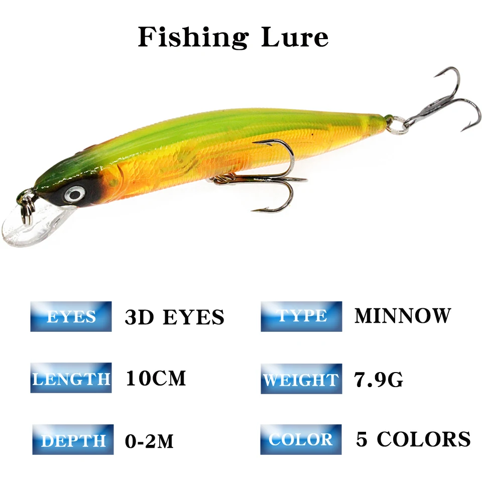 1 шт. Рыболовная Приманка Minnow 100mm 8g Topwater жесткая приманка, воблер джиг-приманки приманка для ловли карпа, черной рыбы, полосатого окуня, Pesca рыболовные снасти SwimBait