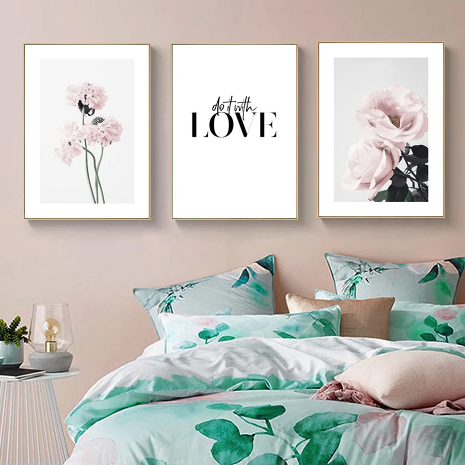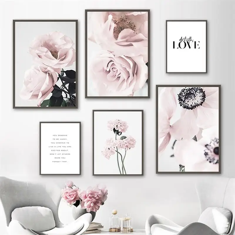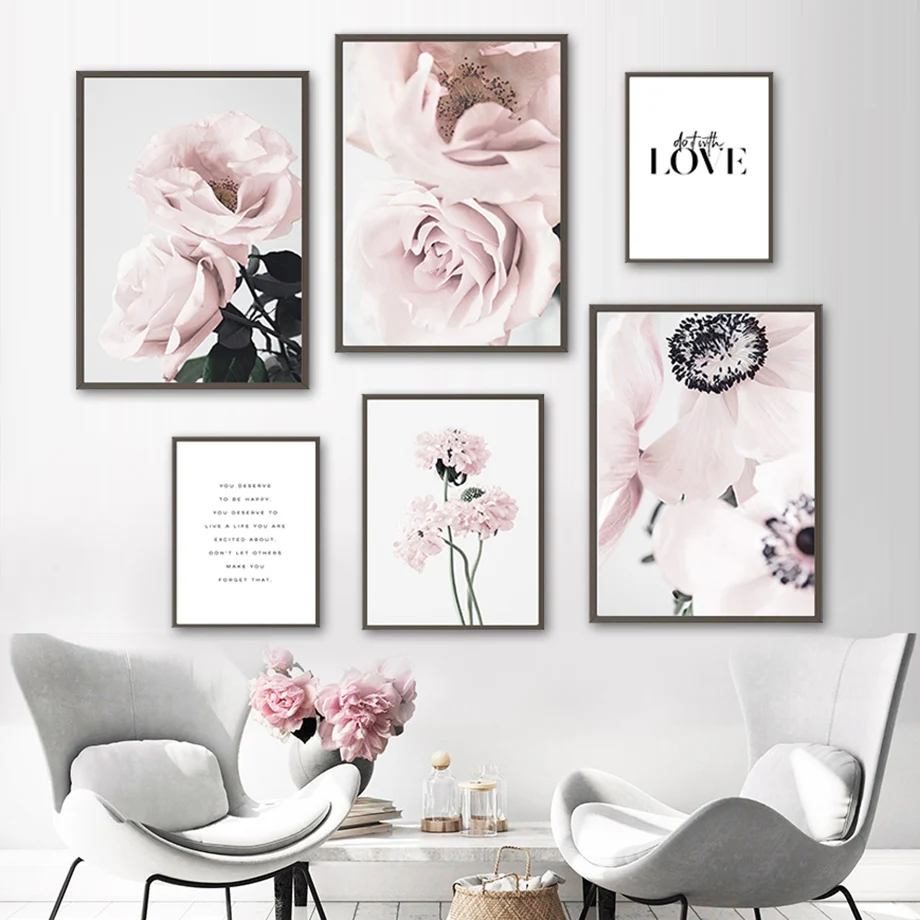 Скандинавский розовый цветок розы художественная стена с цитатой Картина на холсте скандинавские плакаты и принты настенные картины для гостиной домашний декор