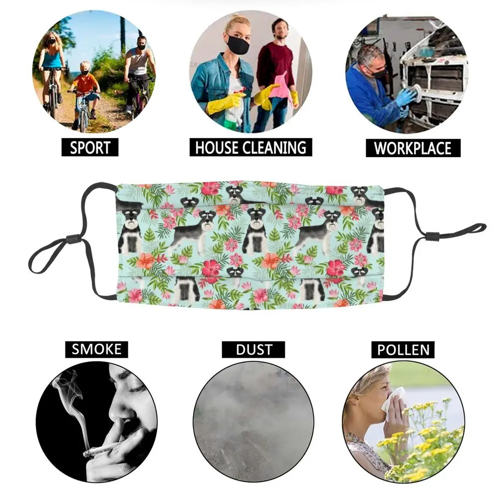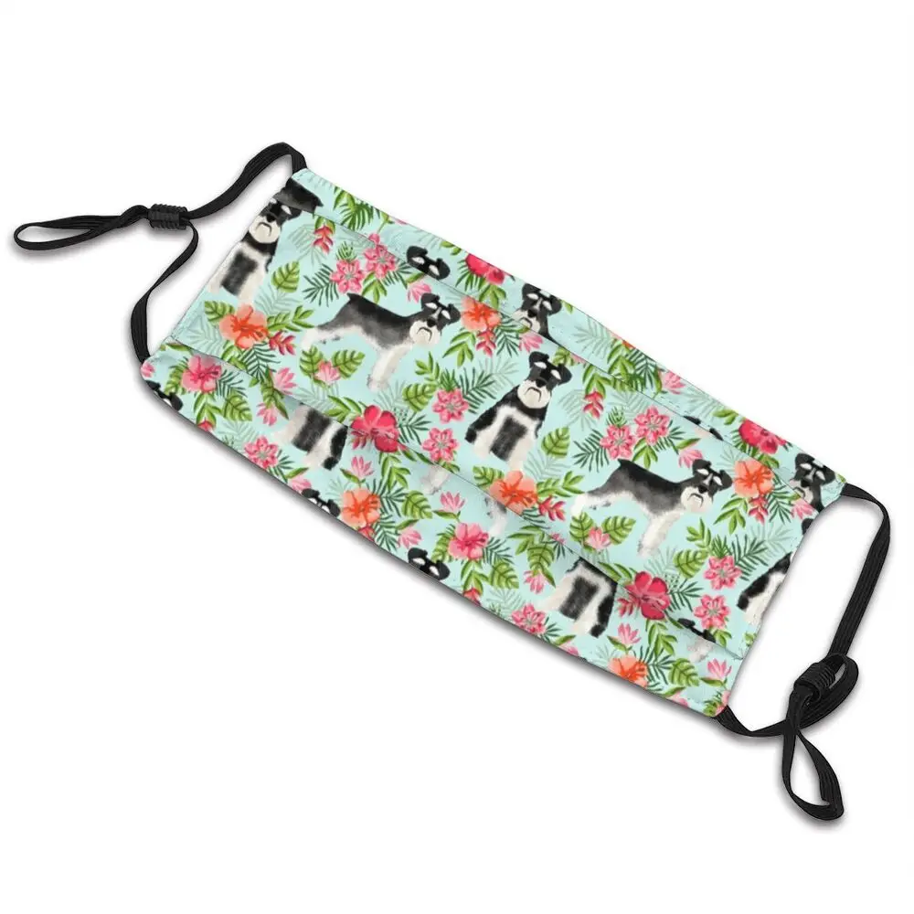 Шнауцер Гавайский узор цветочный гибискус Цветочный узор смываемая маска для лица пылезащитный чехол для рта-Муфель