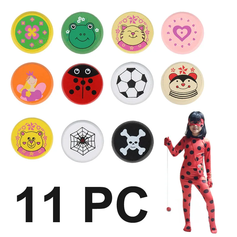11 шт.компл. милые животные, принты, деревянные, божья коровка, игрушки для детей, йо-йо, креативные игрушки для детей, шар йо G0149