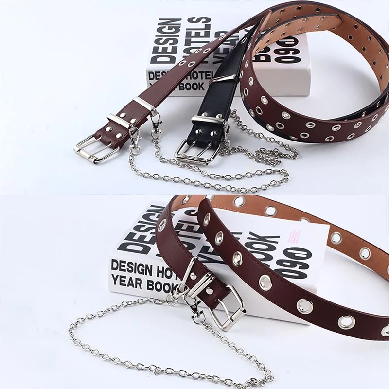 Ремень Q VintagePunk, регулируемый, с двумя рядами отверстий, с декоративной цепочкой, новинка 2021