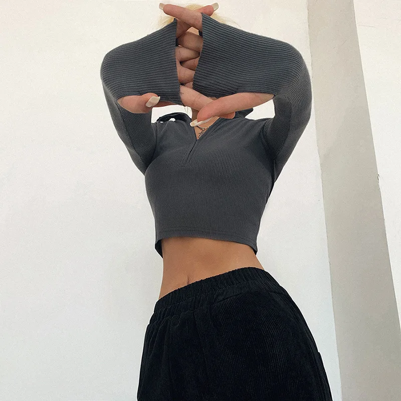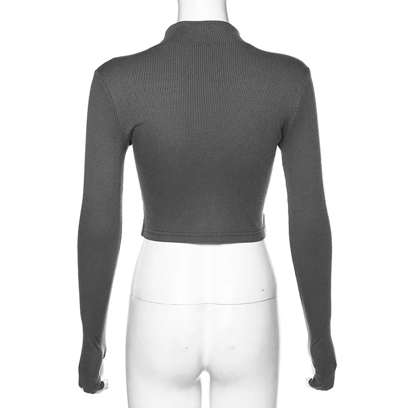 Однотонная Повседневная футболка, Женская водолазка с длинным рукавом, укороченные топы, сексуальные простые Стильные вечерние Клубные, весна-лето 2021