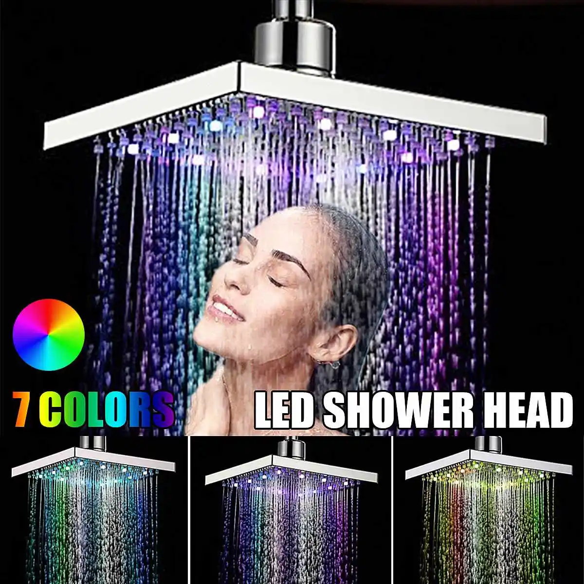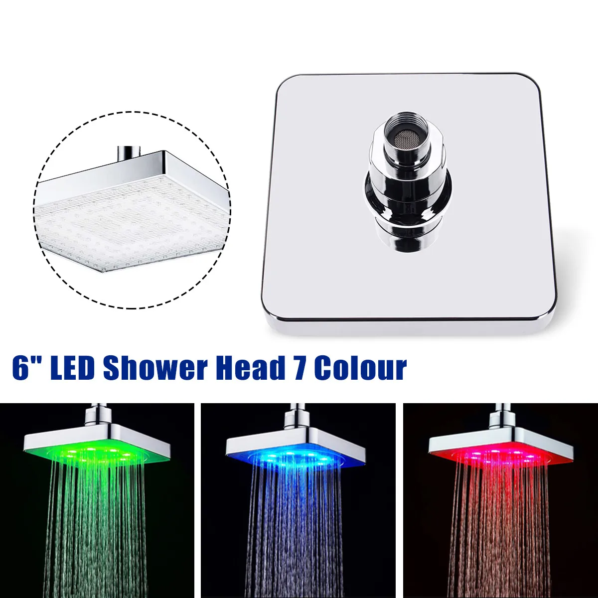 Квадратная светодиодная сменная насадка для душа, АБС-пластик, 6 дюймов, датчик температуры, хромированная отделка
