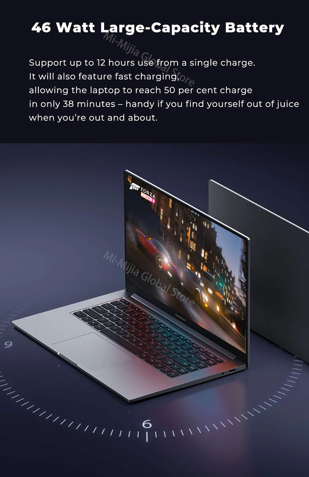 Емкость аккумулятора 46 Вт-час65 Вт TypeC адаптер питанияПоддержка быстрой зарядки 1C, зарядка 50% мощности за 38 минут при выключении12 часов местного воспроизведения видео, 9 часов онлайн воспроизведения видео и 9 часов просмотра веб-страниц