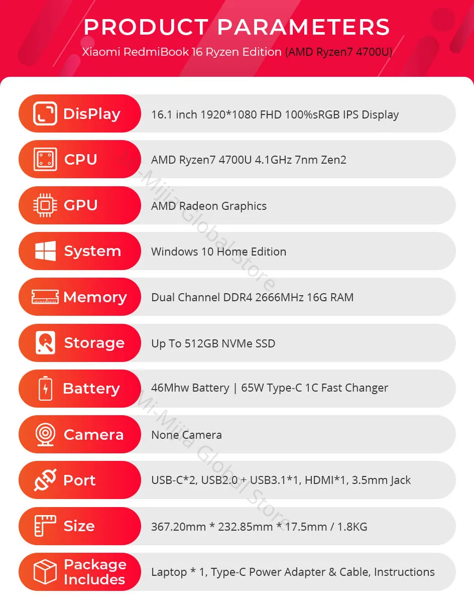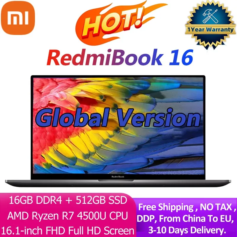 Ноутбук Xiaomi, RedmiBook 16, Ryzen Edition, AMD R7-4700U 16 Гб DDR4 512 Гб SSD, дисплей 16,1 дюйма, 100% sRGB, ноутбук
