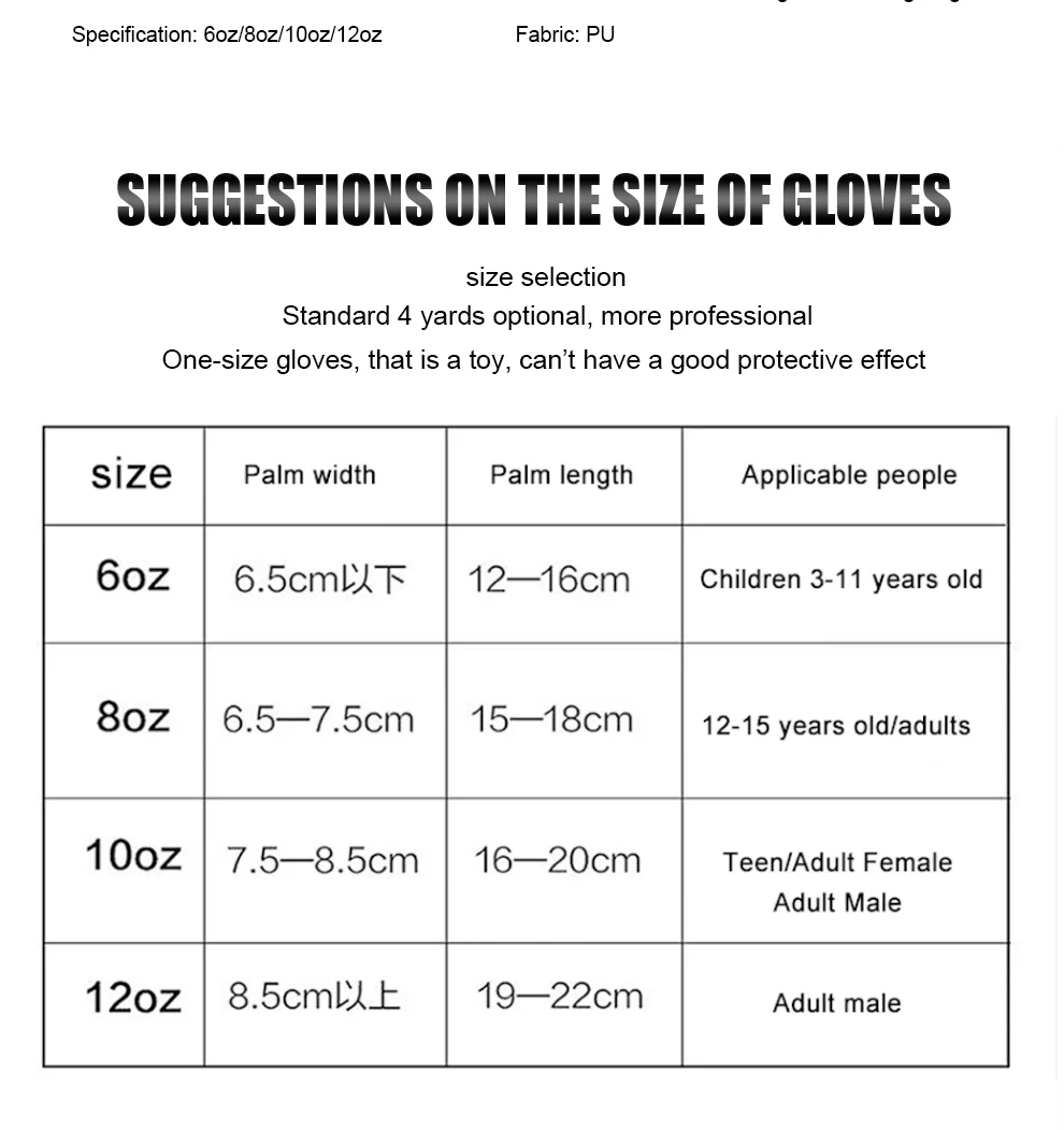 Особенности:1. Изготовлен из высококачественной из искусственной кожи, износостойкий и долговечный для длительного использования.2. Тройная плотность поролона, Удобная Амортизация, эффективное поглощение энергии и защита бокса.3. Конструкция перчаток на крючках может эффективно защитить суставы вашего запястья.4. Разработан с вентиляционными отверстиями, держите руки прохладными и сухими.5. Подходит для тайского бокса, тхэквондо, песочницы, бокса, боев и т. д.Характеристики:Цвет: белый/черный/золотой/оранжевый/зеленый/розовыйМатериал: высокое качество из искусственной кожиРазмер: боксерские перчатки 6 унций, боксерские перчатки 8 унций, боксерские перчатки 10 унций, боксерские перчатки 12 унцийПол: мальчиков/девочек/детейПрименимые люди: взрослые дети мужчины женщины мужчины