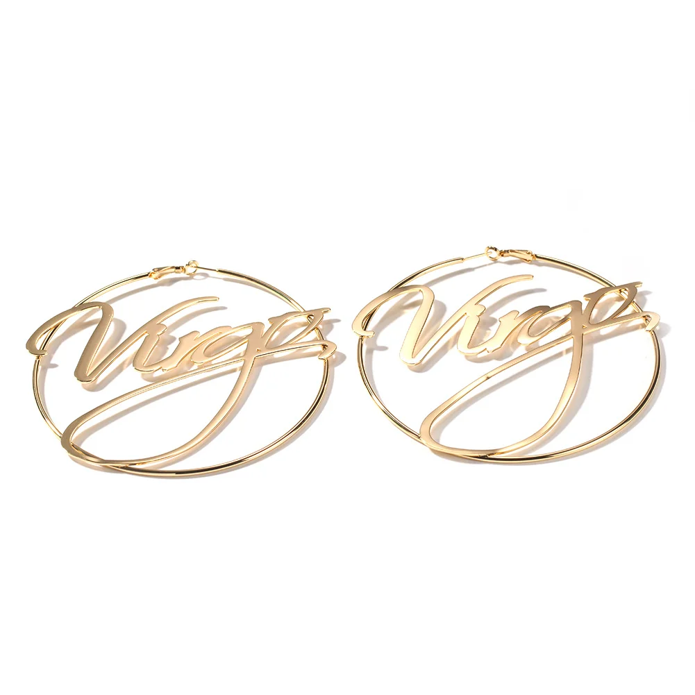 Серьги-кольца женские медные, 30-100 мм, с именем на заказ