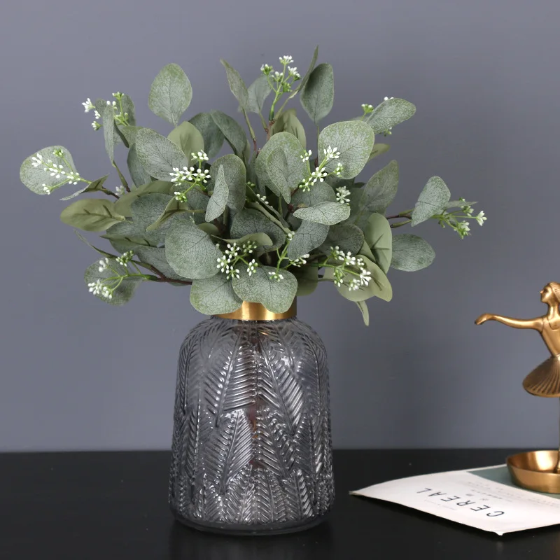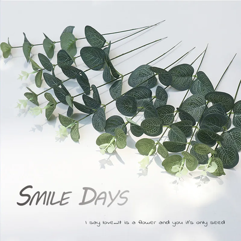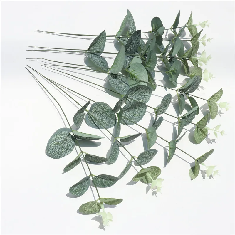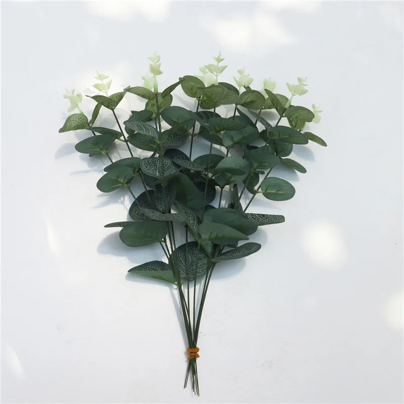 Одиночные Зеленые искусственные листья эвкалипта, ветки растений, денежные листья, искусственные растения, настенные декоративные, для свадебной съемки, реквизит для домашнего декора