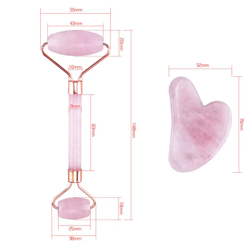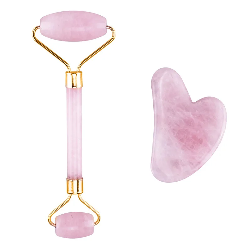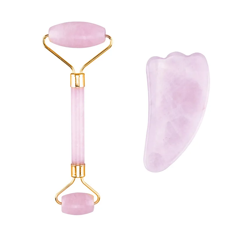 Нефритовый роллер из натурального розового кварца, набор нефритовых скребков гуаша, нефритовый массажер
