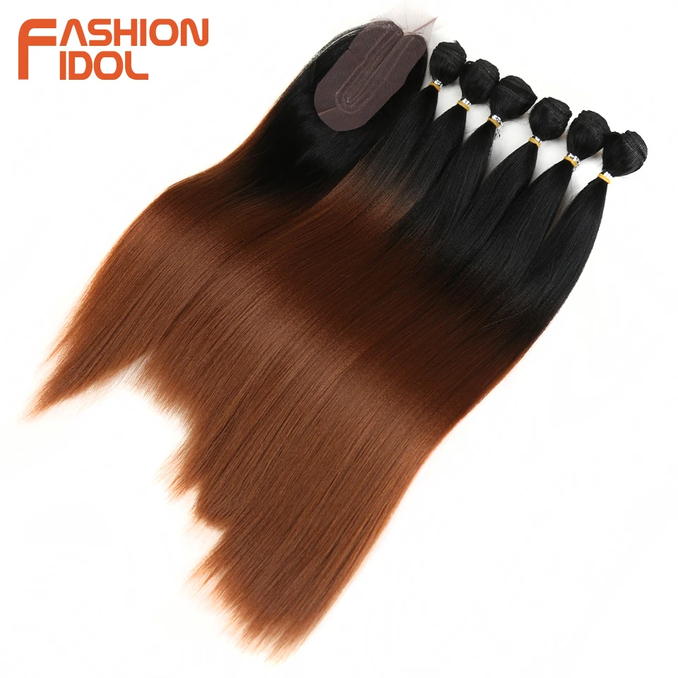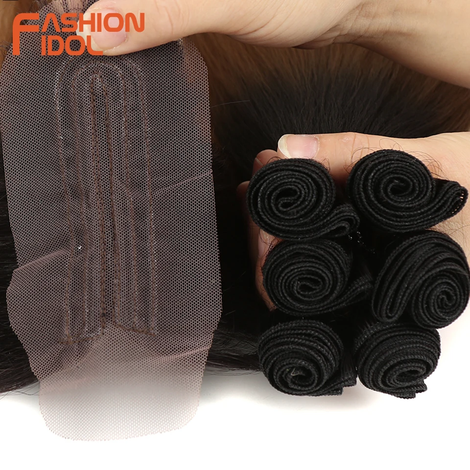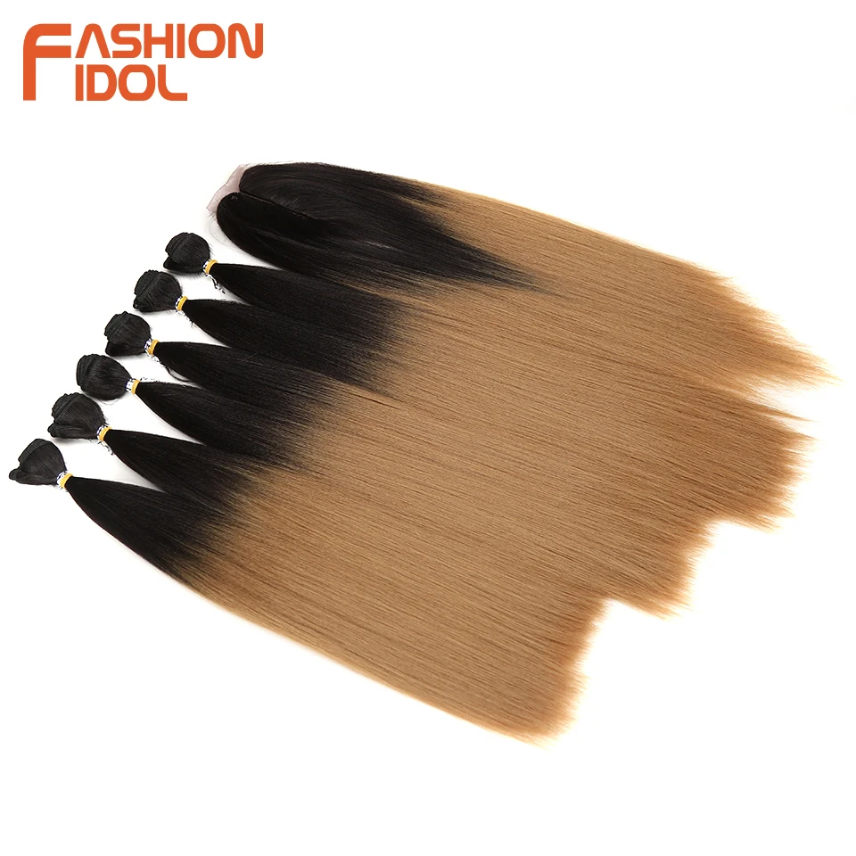 Пупряди прямых волос Yaki FASHION IDOL, 7 дюймов, шт.упак., 16-20 дюймов, Омбре, 613 #, синтетические пучки волос с застежкой, волнистые волосы для наращивания