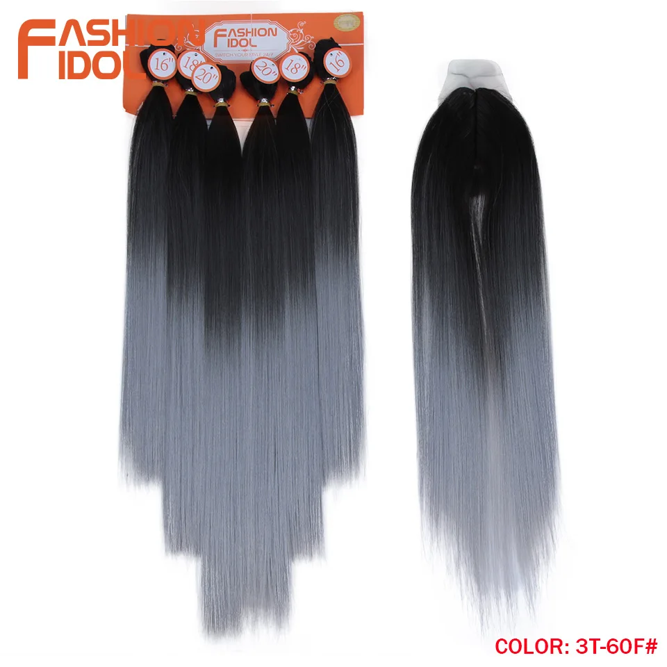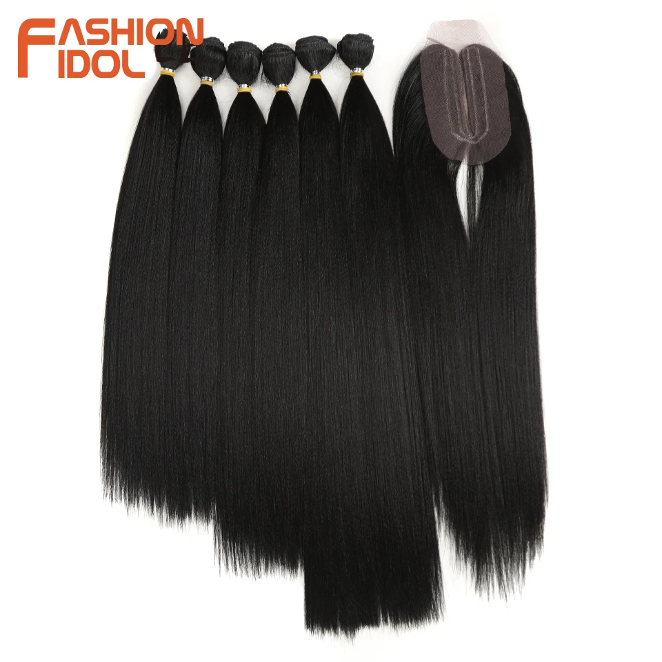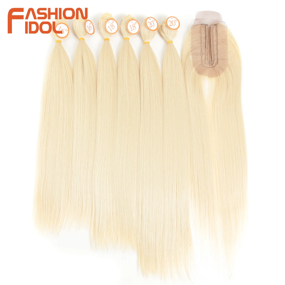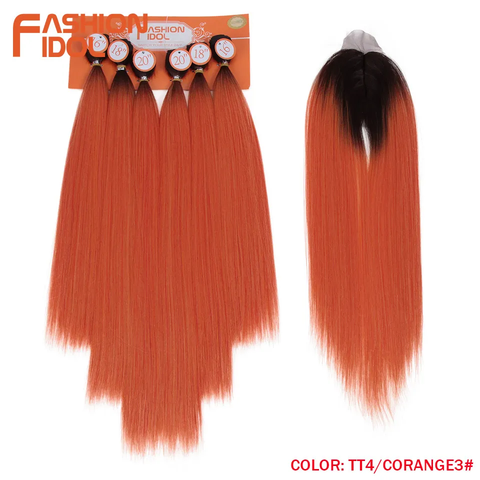 Пупряди прямых волос Yaki FASHION IDOL, 7 дюймов, шт.упак., 16-20 дюймов, Омбре, 613 #, синтетические пучки волос с застежкой, волнистые волосы для наращивания