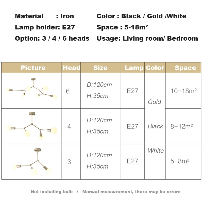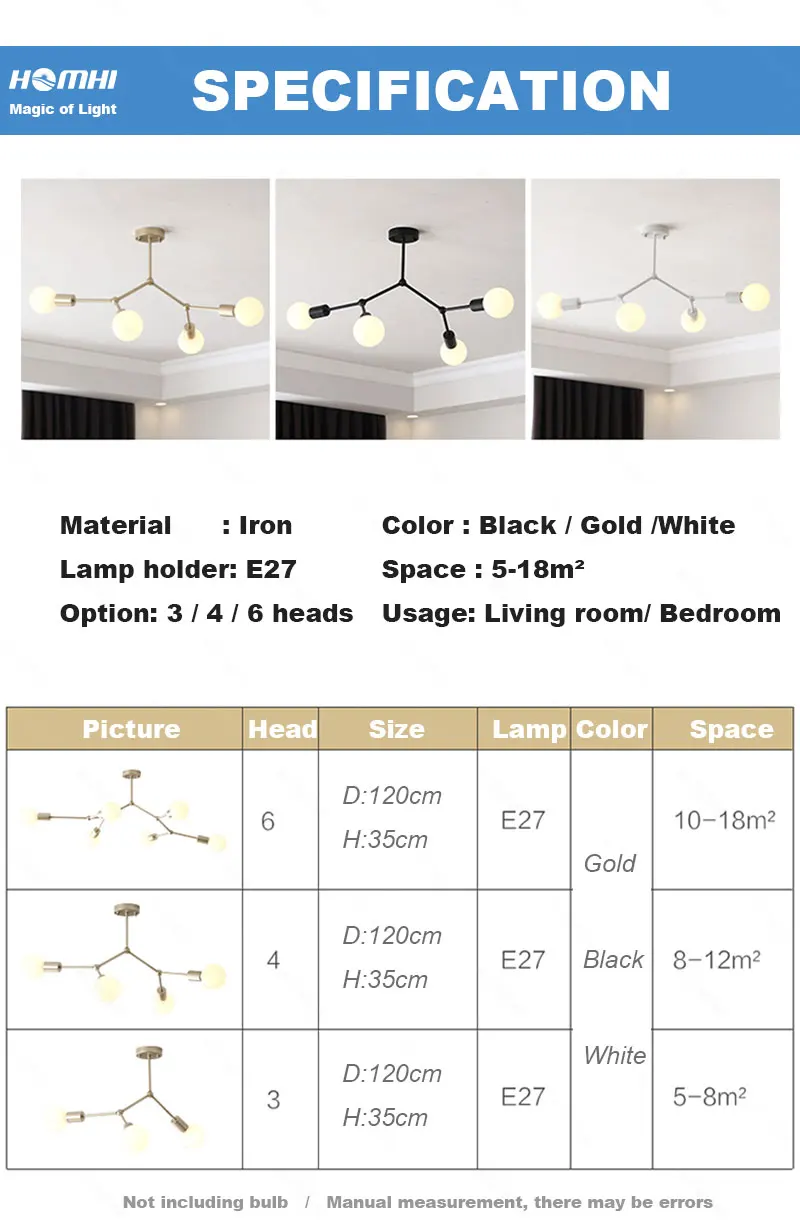 Страна: RU Lampshade Color: 6Heads Gold Size: E27(No bulb) Emitting Color: 90-265V Доставка: Standard Shipping 21.01.2023