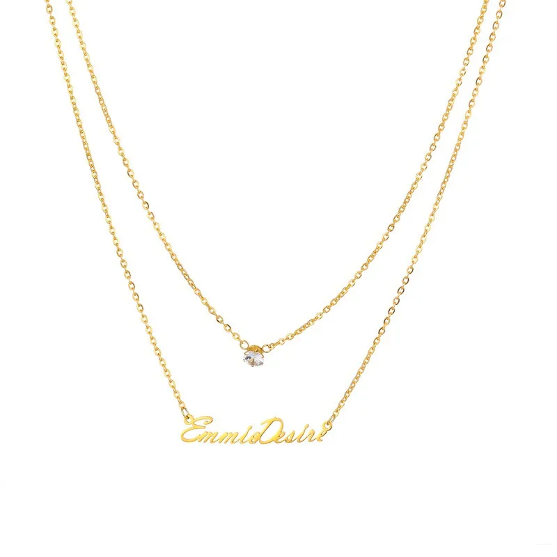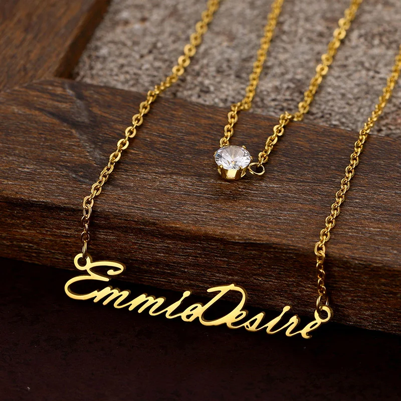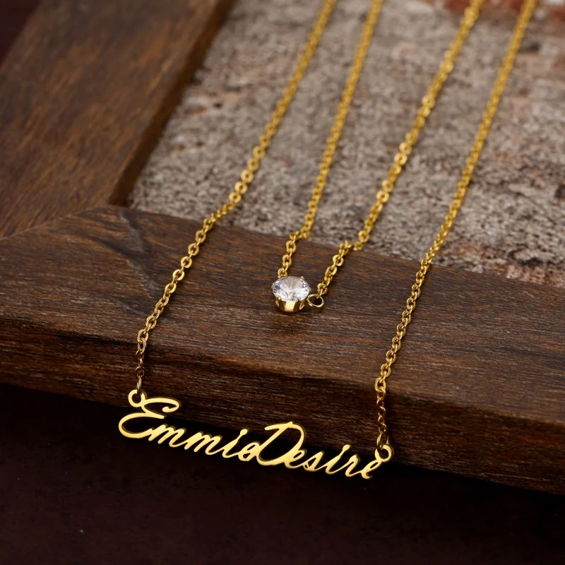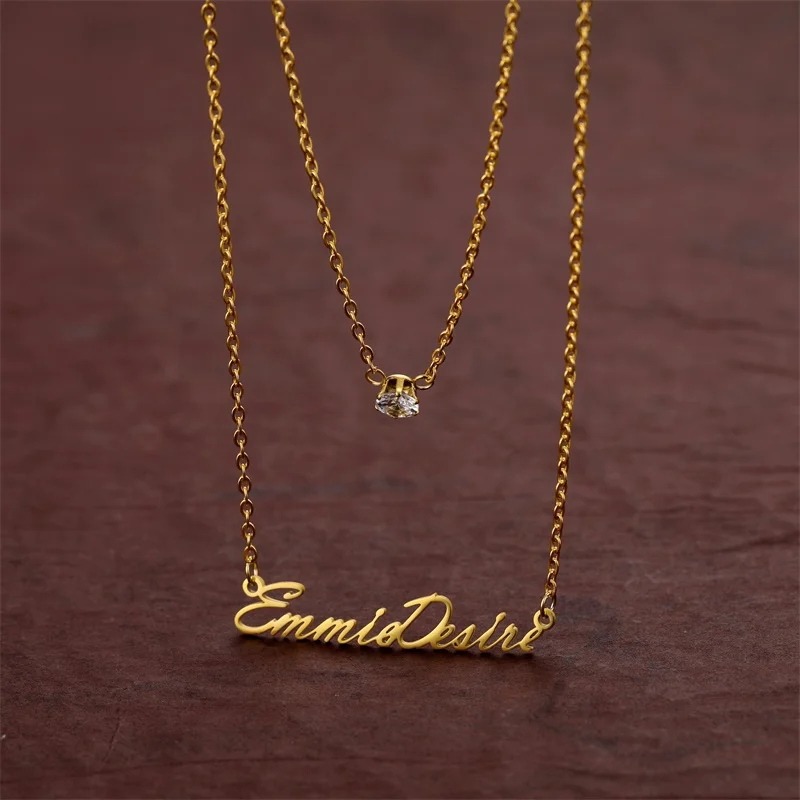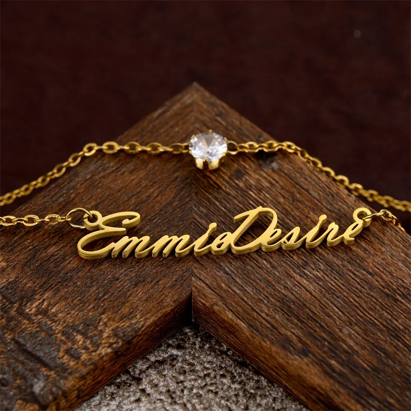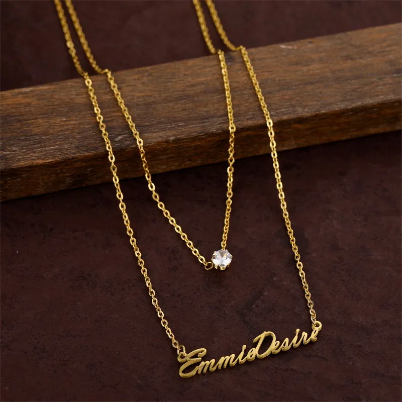 Wanixm по индивидуальному заказу шарма нержавеющей стали циркон двойной Слои имя ожерелья для женщин персонализированное кулон-табличка с именем подарки