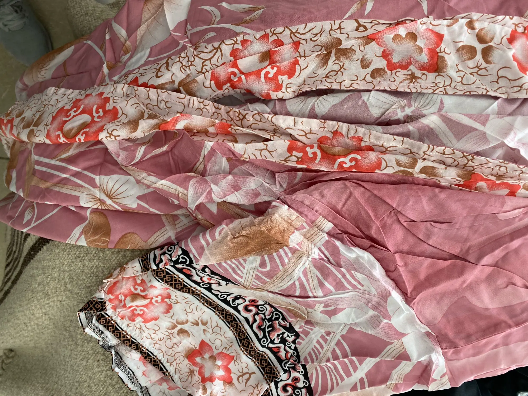 Черный больше, чем розовый... Оба очень красивые! Обычно я ношу Xl/xxl (теперь после ребенка), и я могу носить черный в качестве платья, но розовый только в качестве кимоно или открыть крышку.