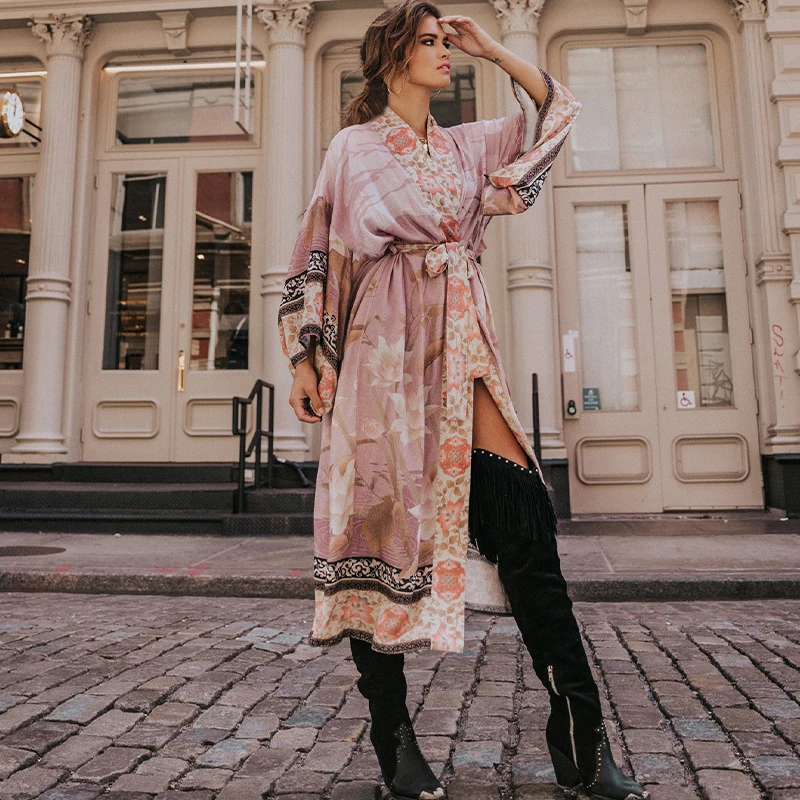 2022 накидки для бикини, Розовое женское платье-кимоно с принтом в стиле бохо, женская пляжная туника, накидка для плавания Q996