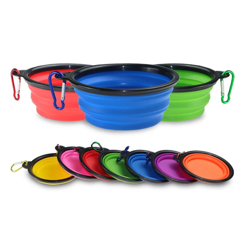 Силиконовая миска для кормления собак, 1000 мл, с карабином