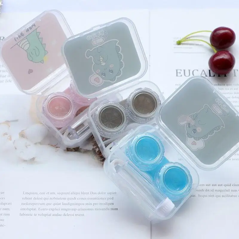 Футляр для контактных линз для женщин и девочек, дорожный мини-чехол с мультипликационным рисунком, кейс для контактных линз
