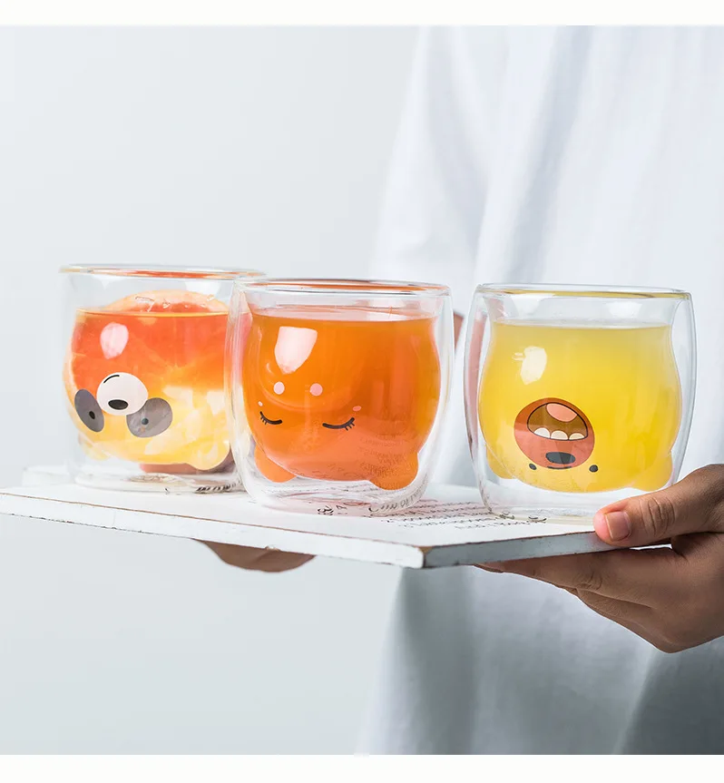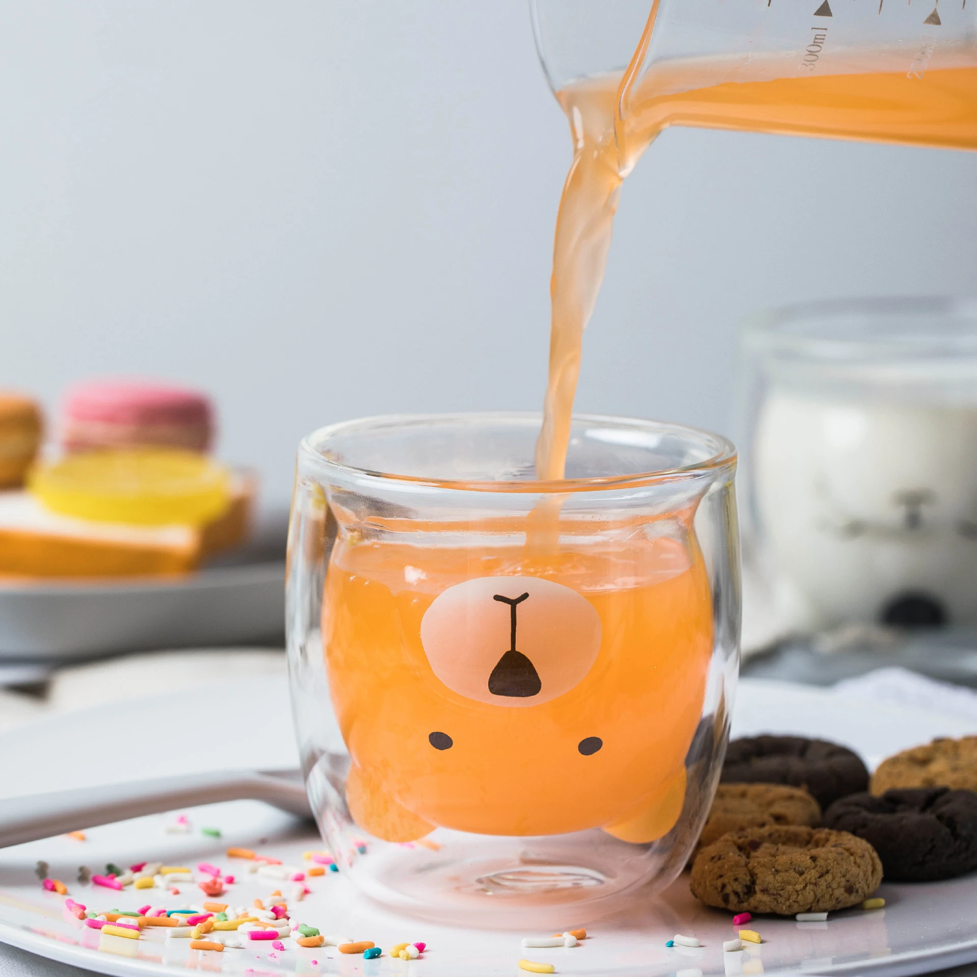 Милая кофейная чашка в форме медведя с двойными стенками, стеклянная молочная чашка, посуда для завтрака, молока, посуда для напитков, Детские кофейные кружки для влюбленных, подарок