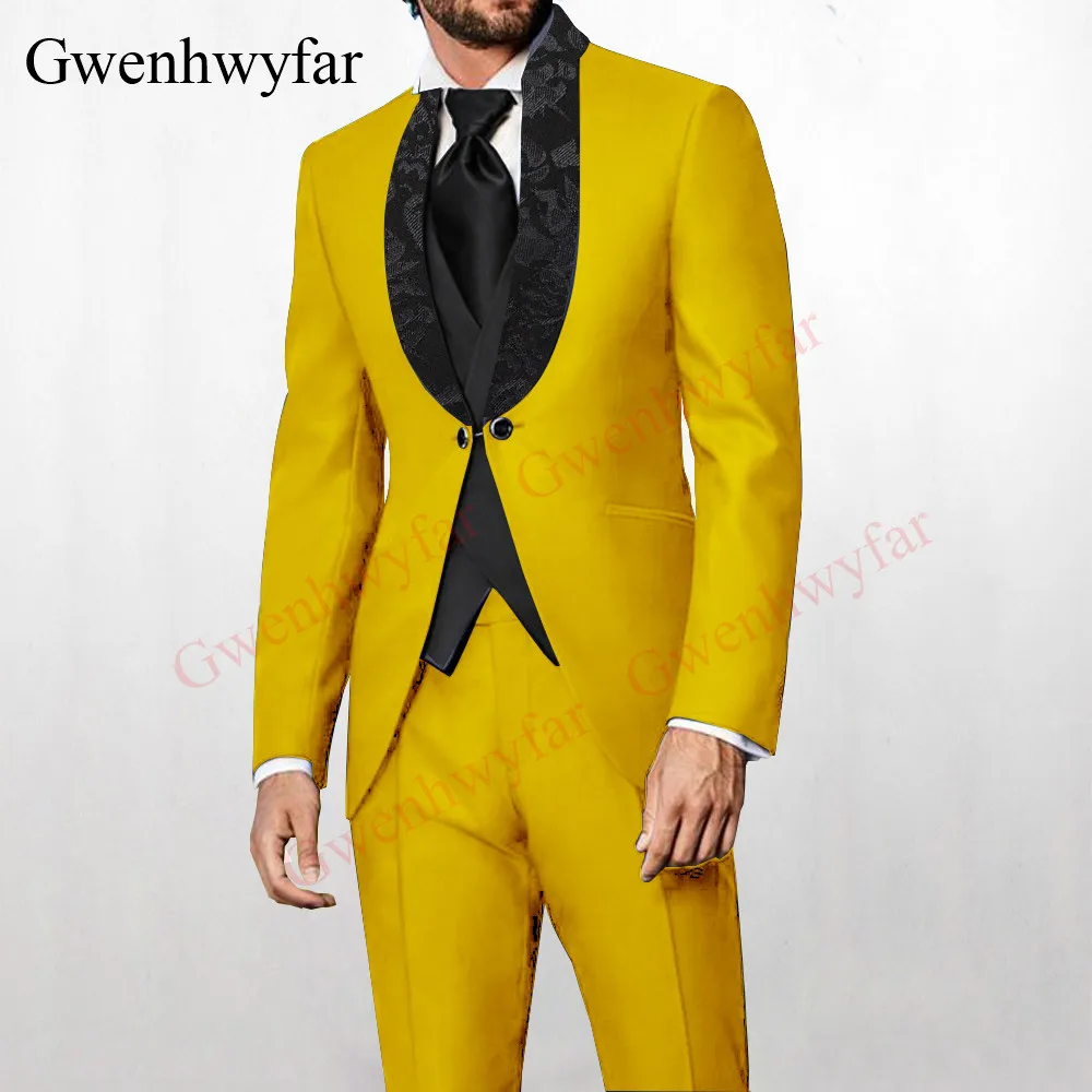 Gwenhwyfar 2021 мужские костюмы на заказ мужские костюмы для свадебной вечеринки с воротником-стойкой с двумя способами пуговиц, желтые смокинги