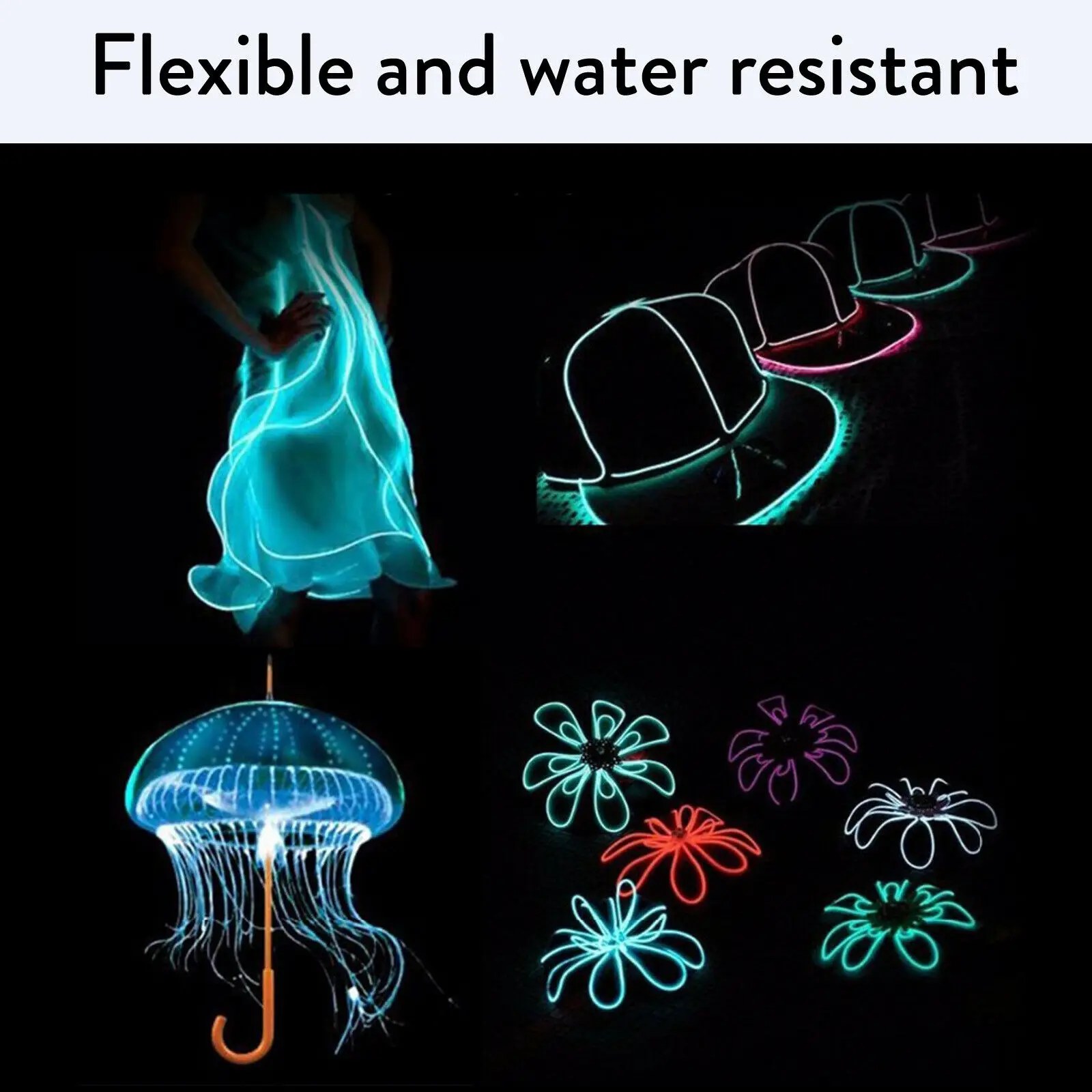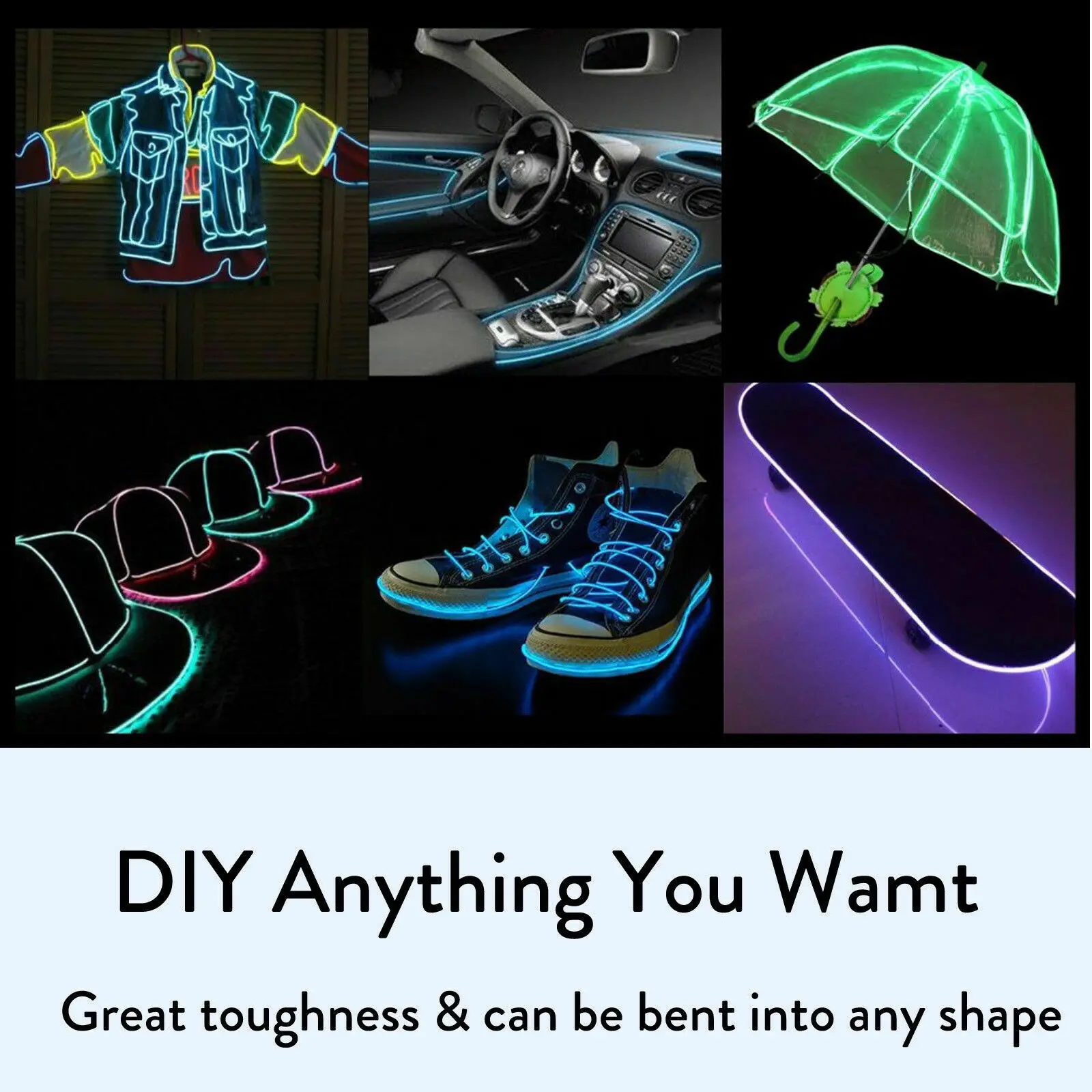 EL цвет провода: белый/светильник зеленый/оранжевый/розовый/красный/темно-синий/зеленый/небесно-голубой/желтый/фиолетовый Длина провода: 16,40 футов (5 м) Гибкая и водостойкая, может быть согнута в любой форме и нарезана на любую длину. Может предложить 360 градусов освещения. Энергосбережение и экологичность. Длительный срок службы более 12000 часов. Отлично подходит для украшения автомобиля, ночных клубов, вечеринок, темных коридоров, почти везде, где вы можете себе представить. Вы также можете использовать его вокруг спиц ваших велосипедных шин, запястья, даже ошейник вашего питомца для дополнительной защиты в вечернее время.