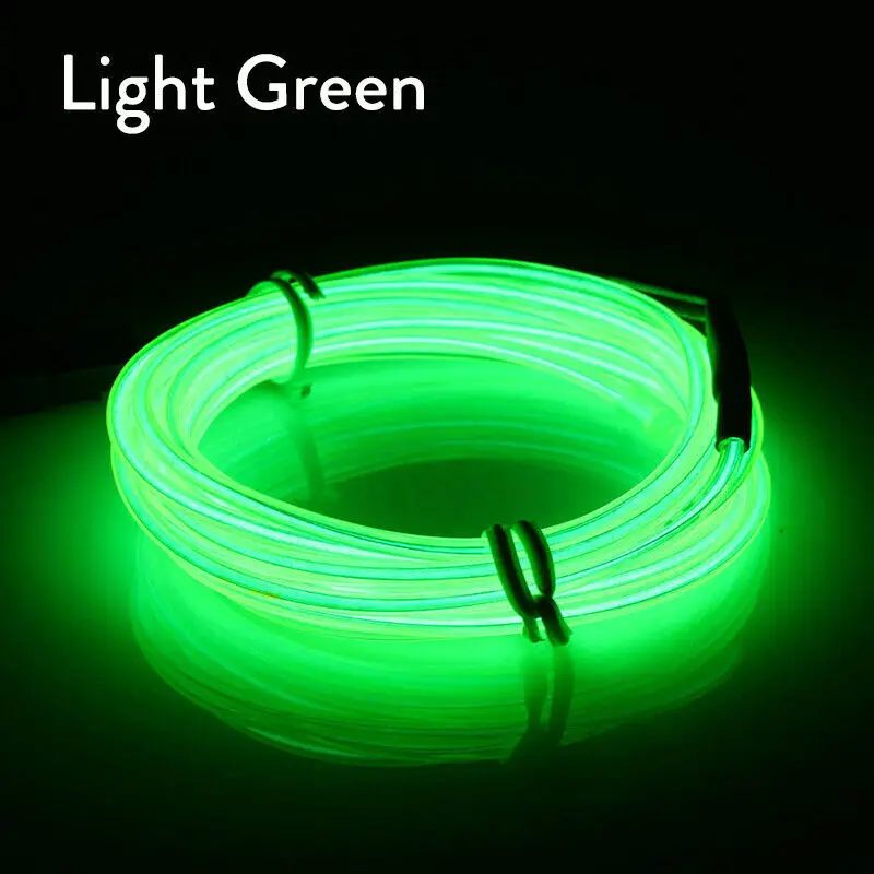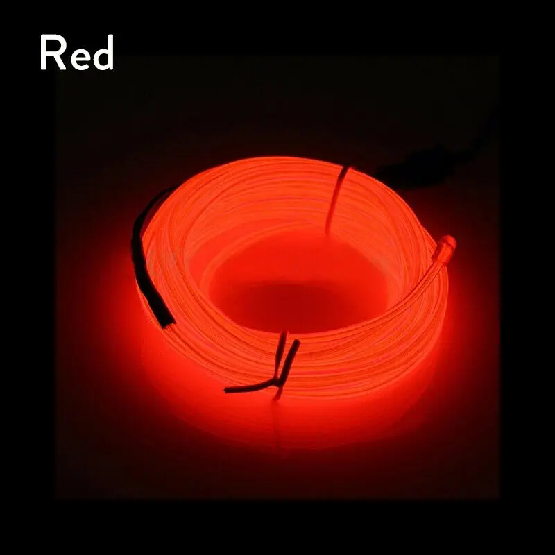 Светящаяся неоновая Светодиодная лента EL Wire 5 м, световая полоса светло-зеленого, красного, желтого, белого цветов, для автомобиля, вечеринки + контроллер с активацией звуком 3 в
