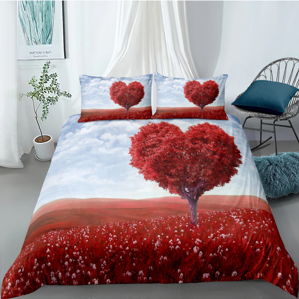 Комплект постельного белья с 3D рисунком красного облака, с пододея...