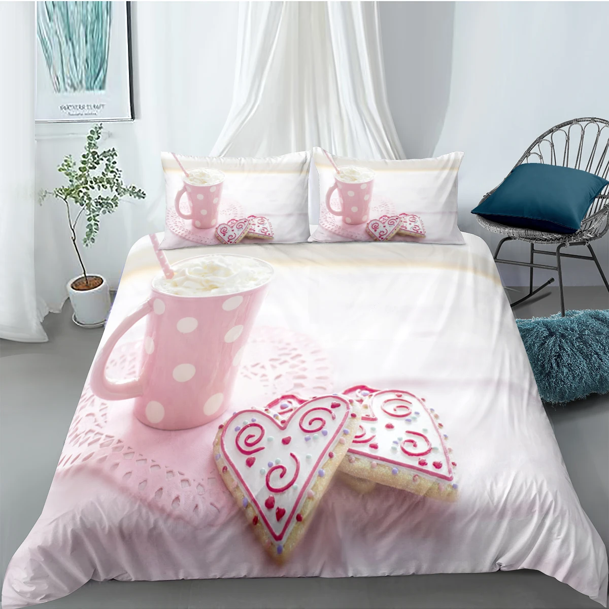 Комплект постельного белья для макияжа, розовый пододеяльник для де...