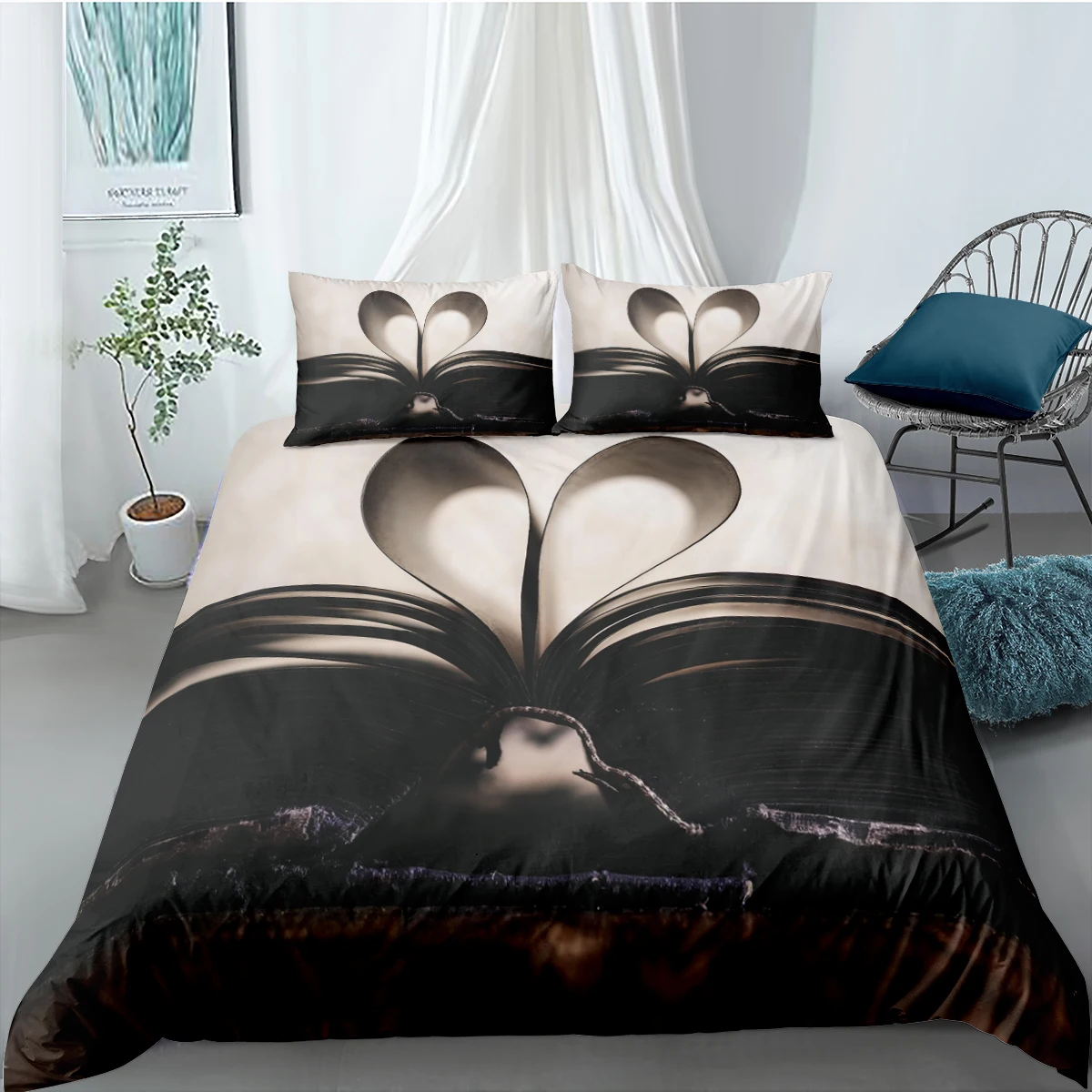 3D Черный Комплект постельного белья Queen Постельное белье Комплек...