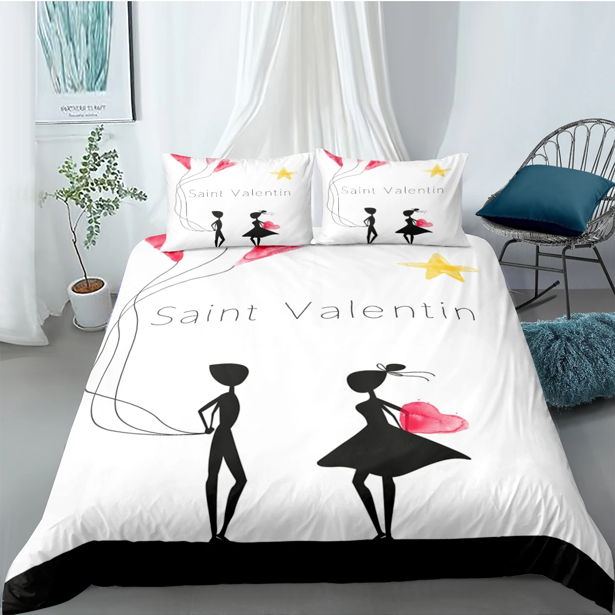Скандинавский пейзаж с влюбленными, черное постельное белье для пар...