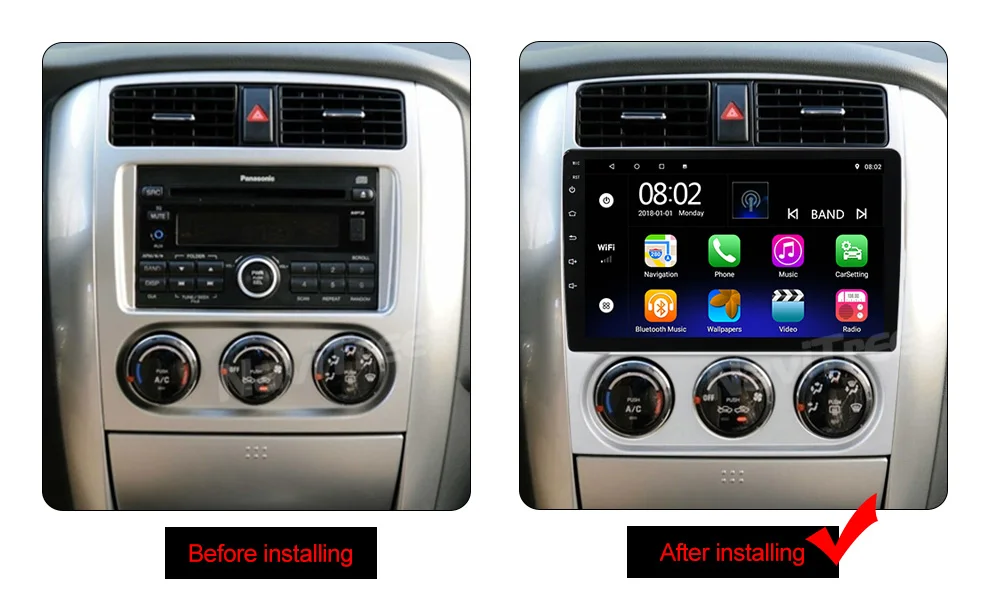 1080p видео воспроизведение, Поддержка оригинальных кнопок рулевого колеса автомобиля, поддержка встроенного микрофона, Bluetooth,WIFI,