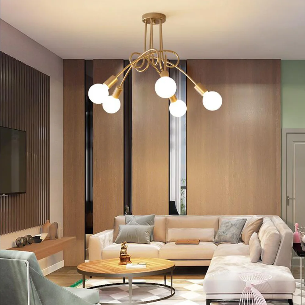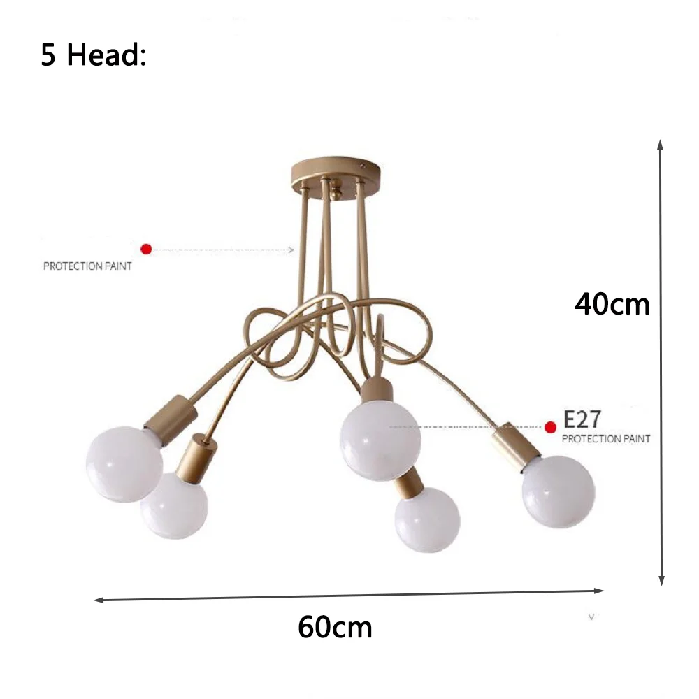 Скандинавские современные кривая материал потолочные люстры кованого железа Позолоченные светодиодный подвесной светильник для ресторана Декор в гостиную