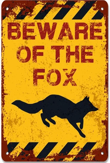 Остерегайтесь лисы, забавный винтажный металлический знак Ретро жестяной знак, декор для гаража, дома, бара, паба, магазина, отеля, мужской пещера, клуба