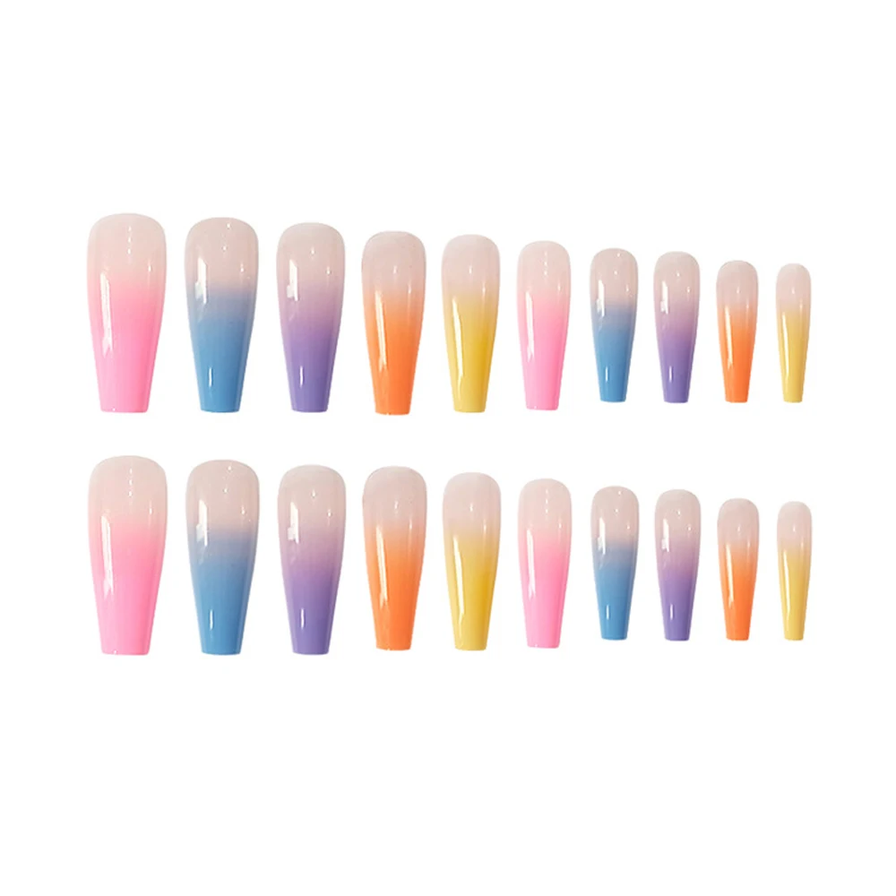20 шт./компл., градиентный цвет, длинный гроб, накладные ногти, европейская Радуга, балерины, полное покрытие, накладные ногти для наращивания, сделай сам, цветные ногти