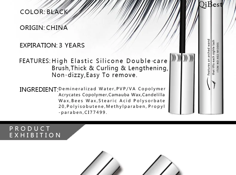 Черная 3D тушь QiBest 5 мл профессиональная водостойкая шелковистая...