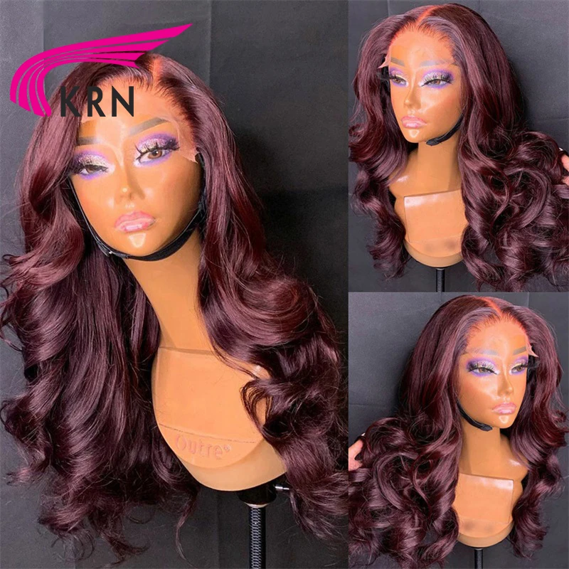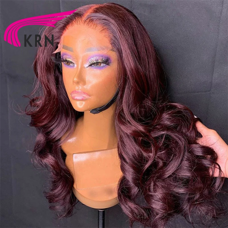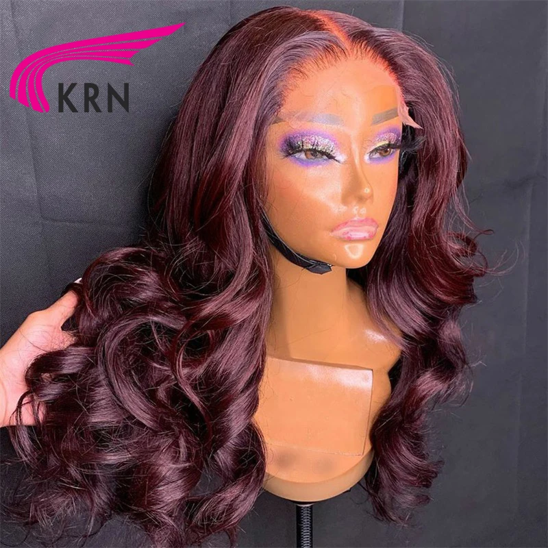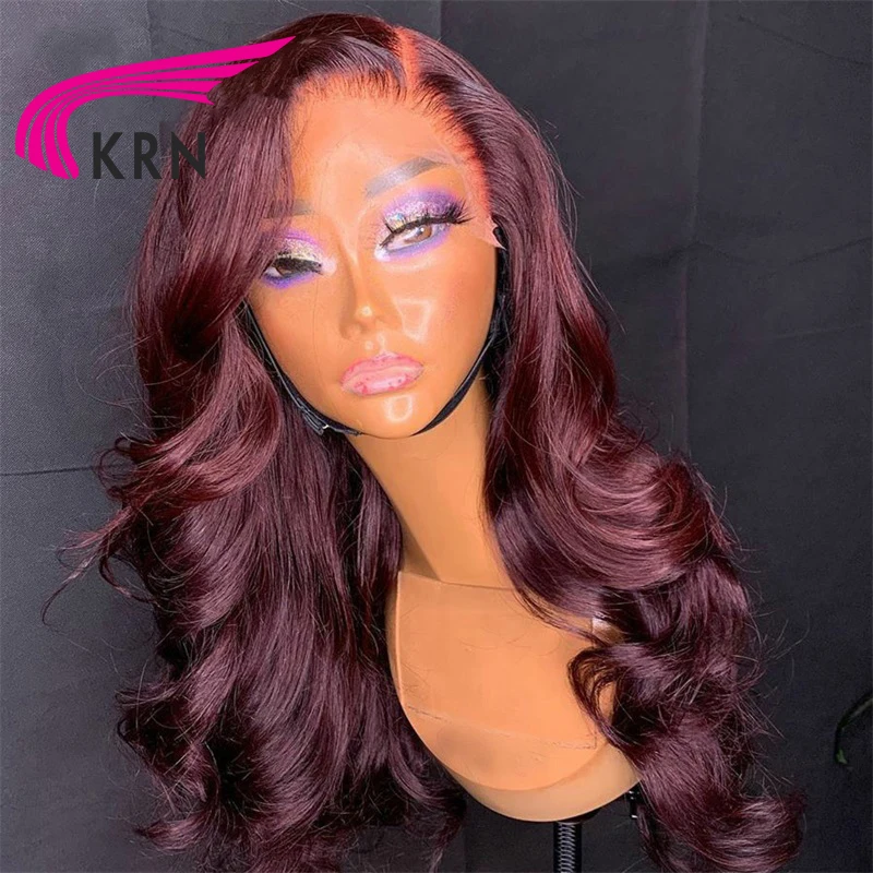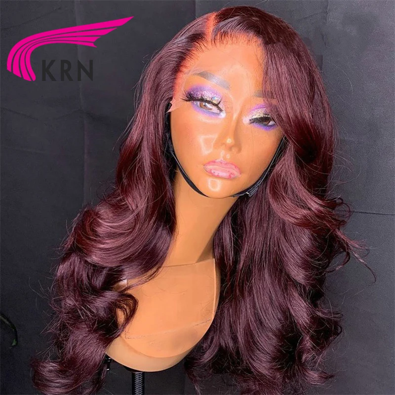 KRN 99J парики на сетке спереди для женщин бразильские волосы бордо...