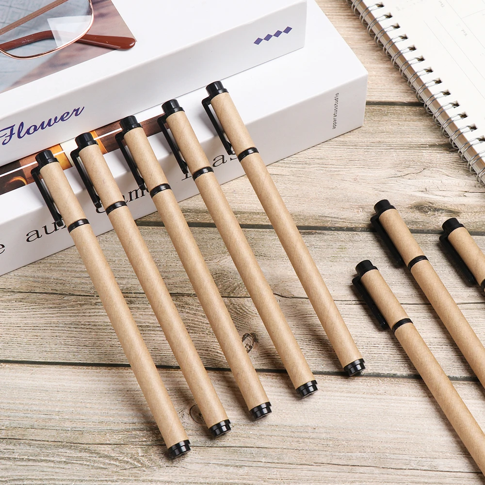 25 шт крафт Бумага Гладкие Черные чернила Цвет ручка с чернилами стандартных цветов ECO Содружественный Рециркулированный гель черные чернила для ручек зеленый офиса школы пишущая ручка
