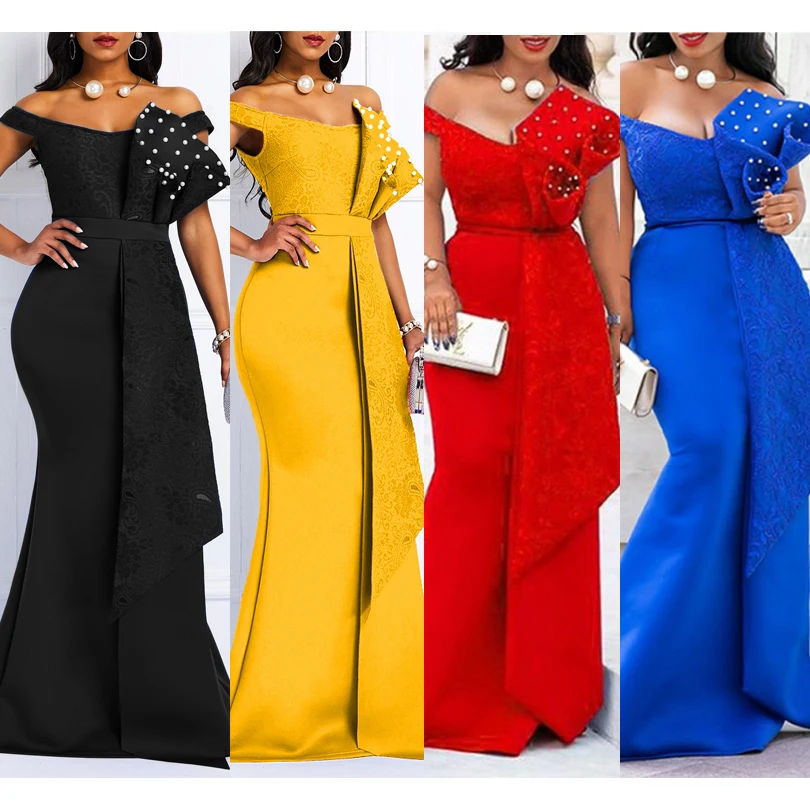 2021 женское платье макси платья Элегантный лeтo oткрытыe плeчи бисер Русалка Тонкий сексуальный халат в винтажном стиле; Женские Вечерние Длинное Платье