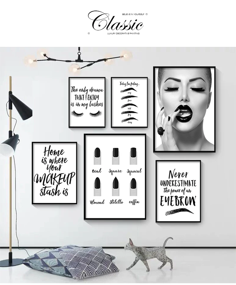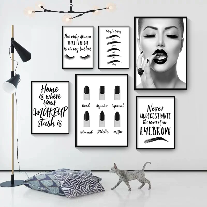Современный Маникюр брови художественный холст рисунок черный белый...
