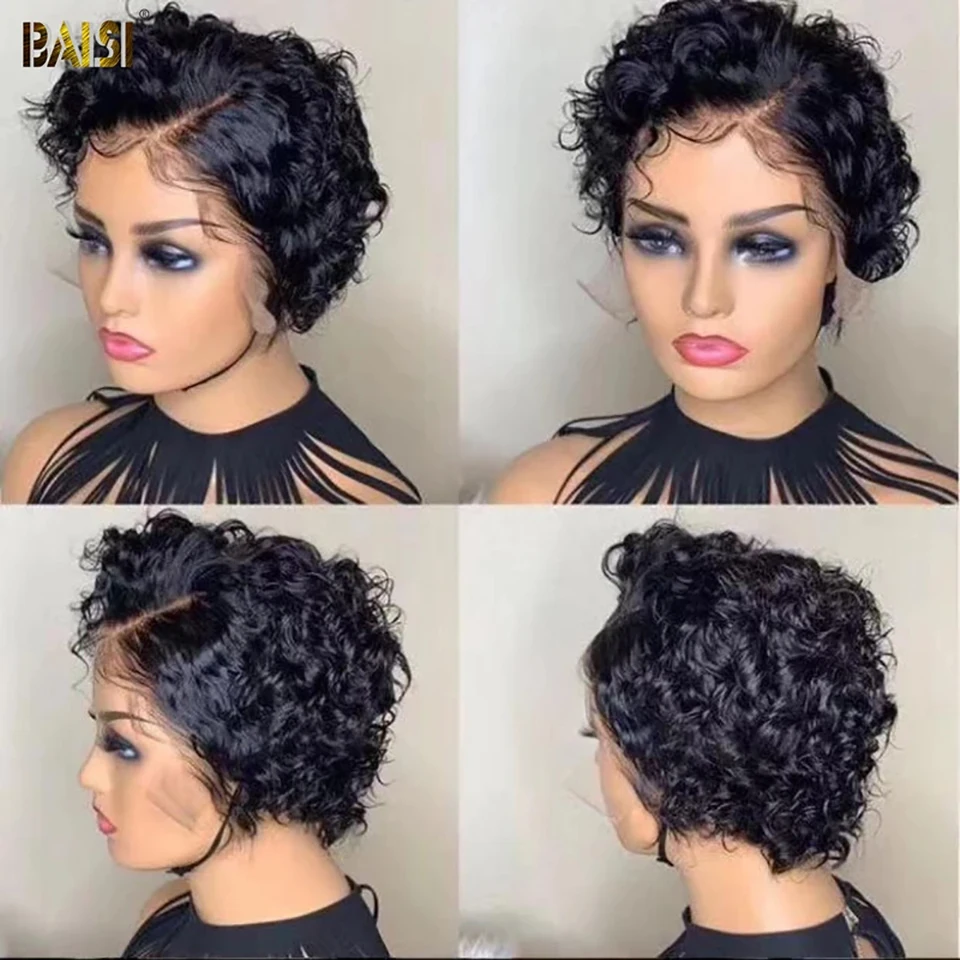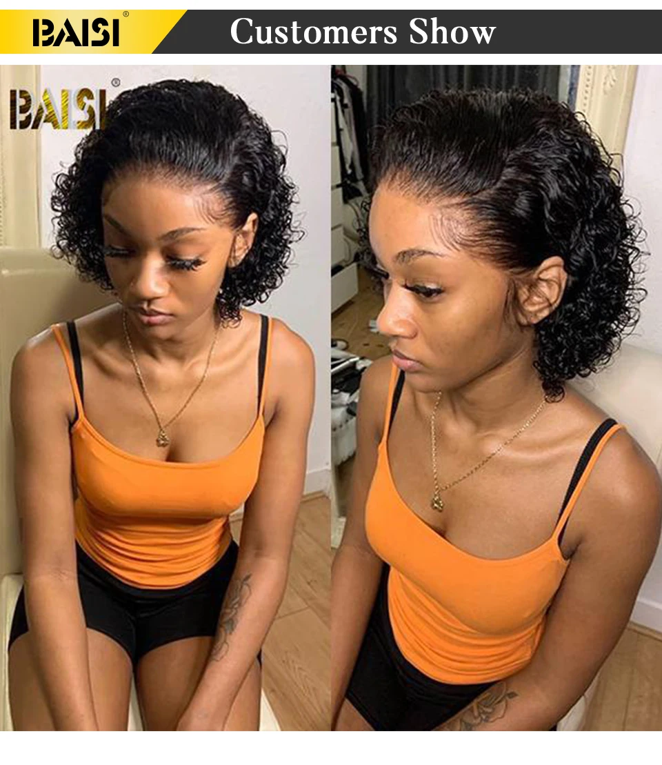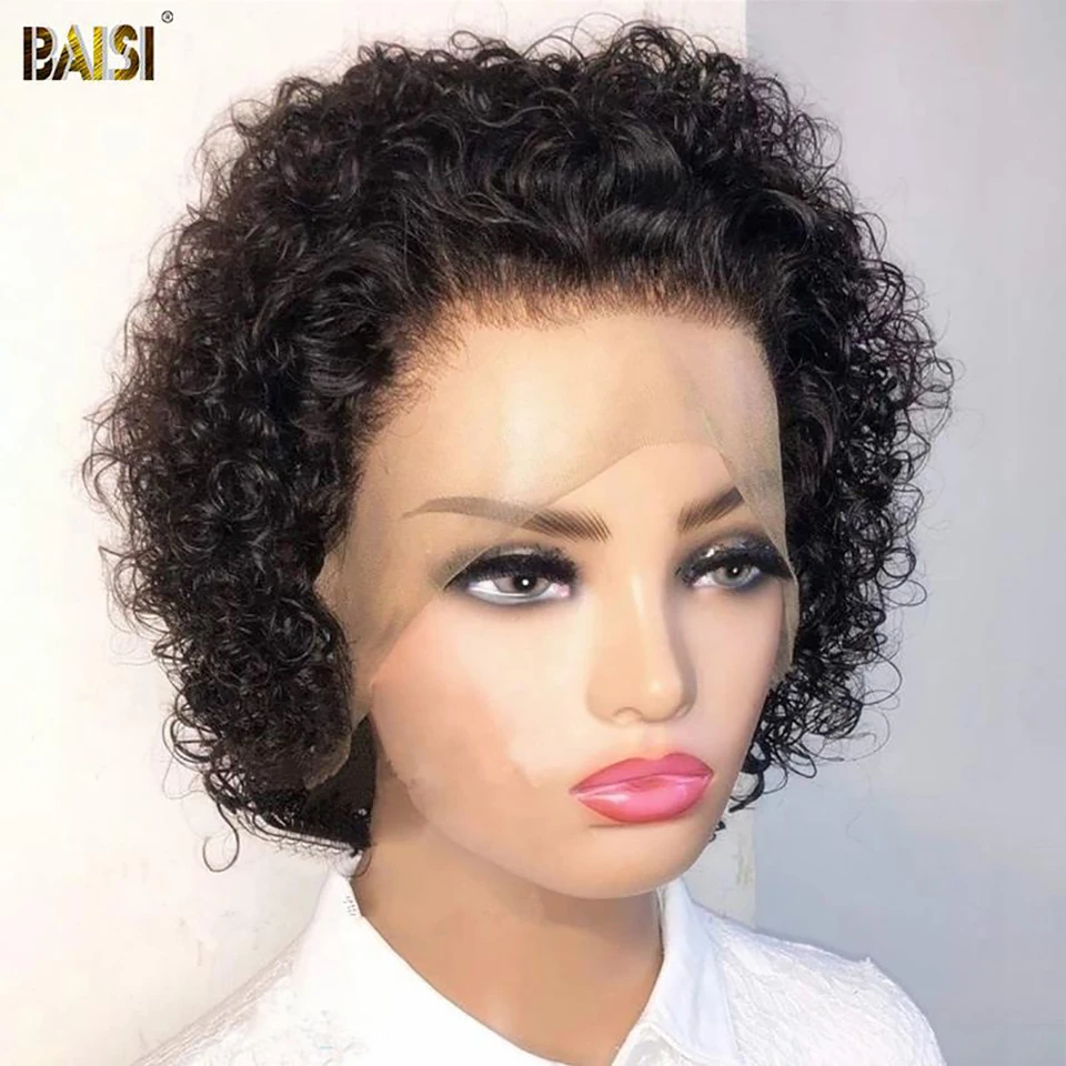 BAISI Бразильский парик с вырезами Фея, короткие вьющиеся волосы, парик Боб, парики на сетке спереди, человеческие волосы для женщин, парики без повреждений 13x4, парик на сетке спереди