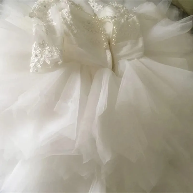 Жемчужное кружевное Многоярусное белое платье с цветочным узором для девочек на свадьбу; Детское бальное платье из тюля; Одежда для дня рождения и причастия