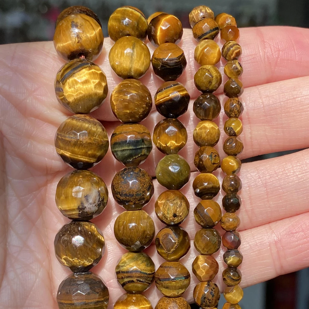Бусины под камень тигровый глаз, круглые бусины с гранями натурального желтого цвета россыпью для изготовления ювелирных изделий, браслетов, ожерелий, аксессуаров ручной работы, 4-12 мм